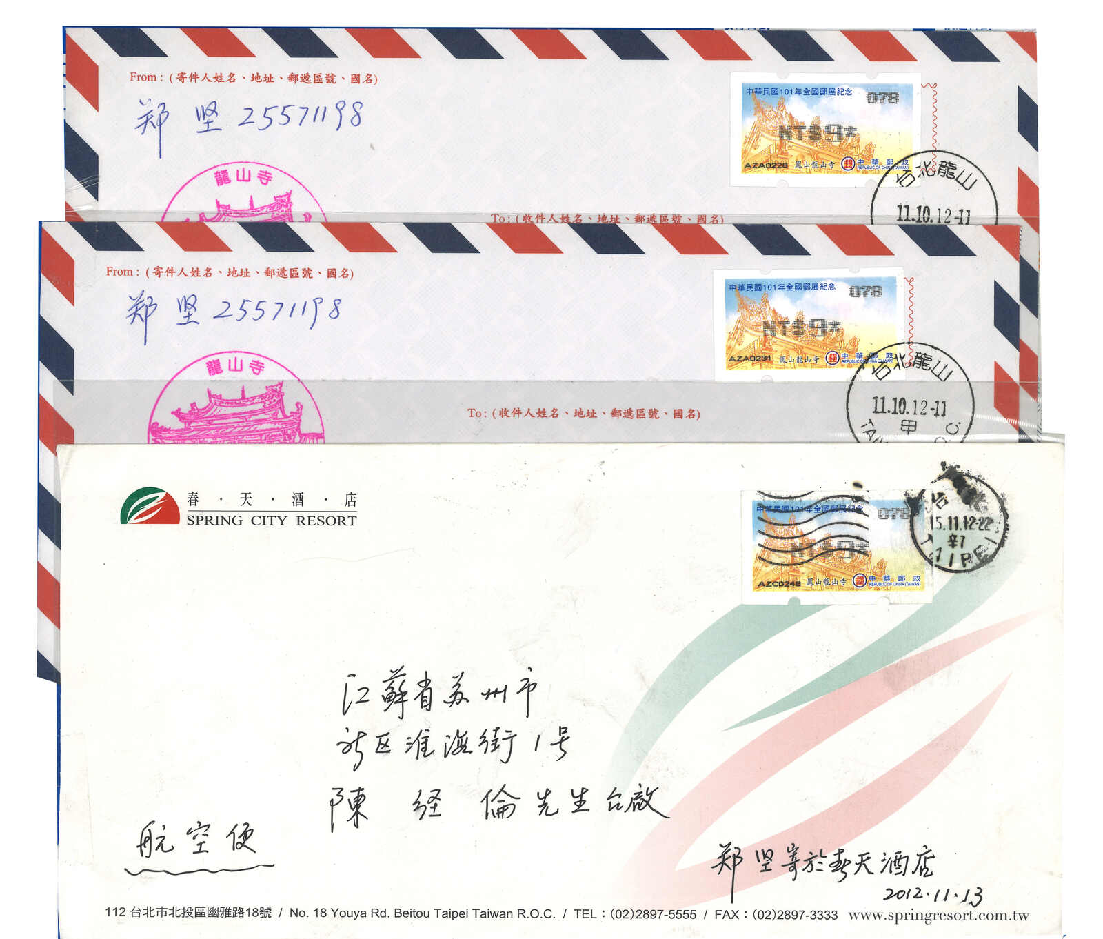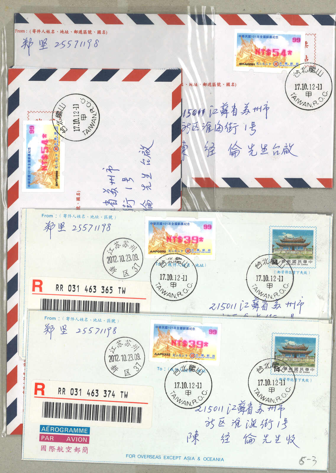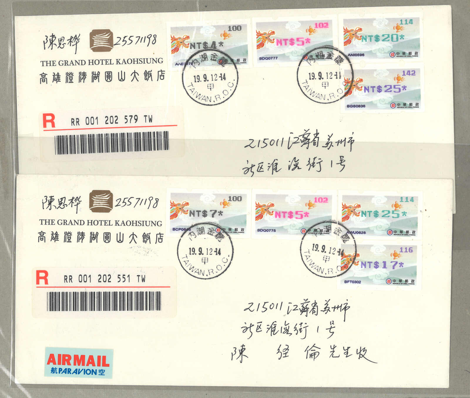 3437 cover image2012 a comprehensive collection of Taiwan ROCUPEX 12 Fongshan ATM stamps, containing about 20 stamps and 40 covers, including mint stamps, combination covers and commerically used covers. rs etc.