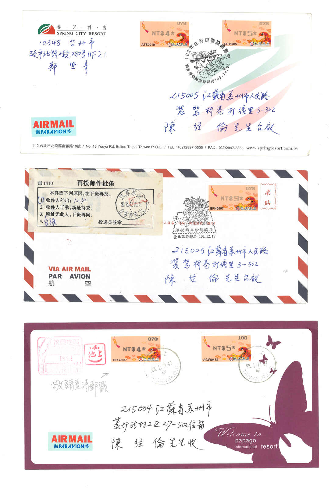 3436 cover image2012 a comprehensive collection of Taiwan Auspicious Dragon ATM stamps, containing about 60 stamps and 80 covers, including variety stamps, illustrative covers, commemorative covers etc.