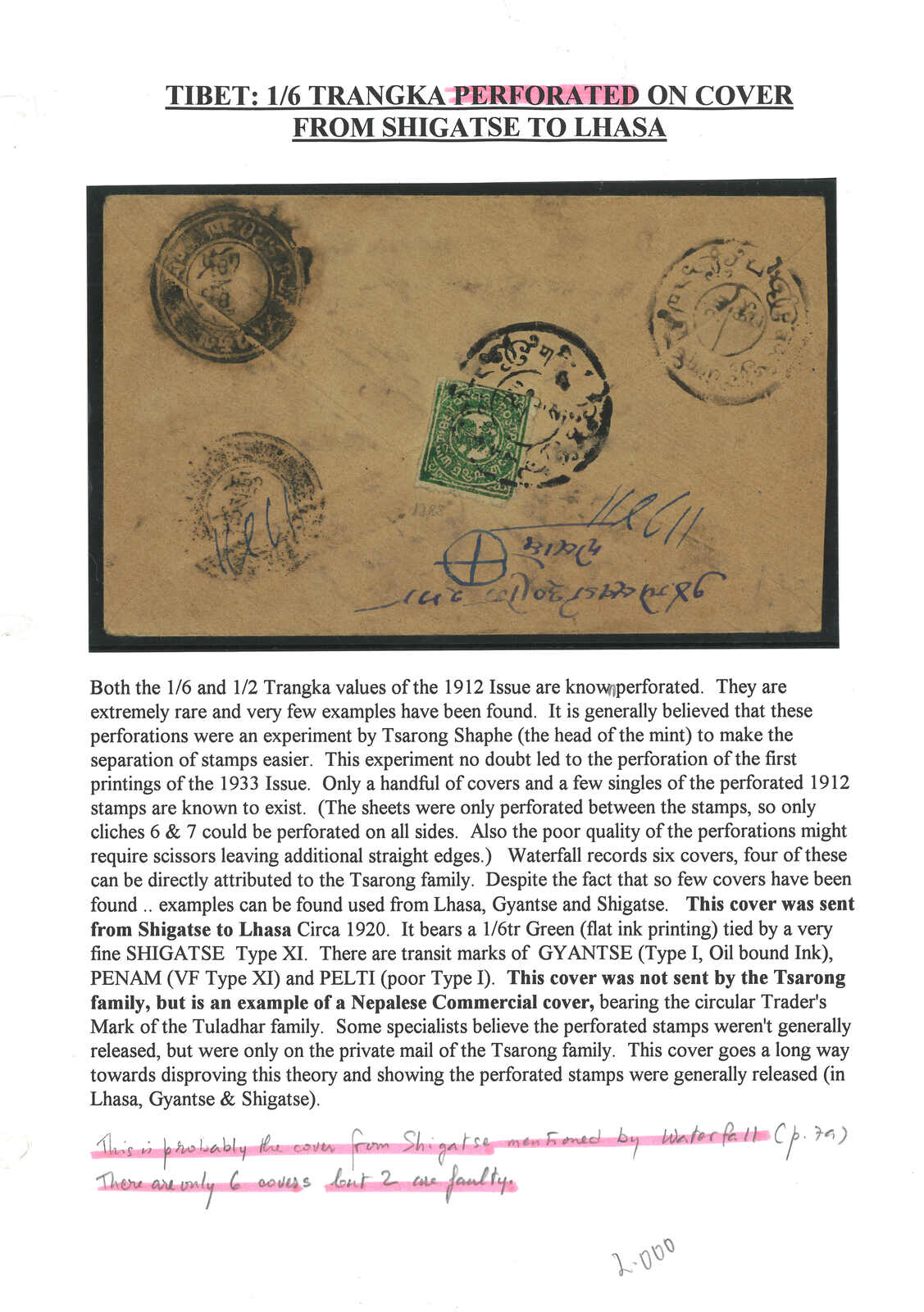 Tsarong family only but this example is not. Postmarks of Penam and Pelti are also scarce.