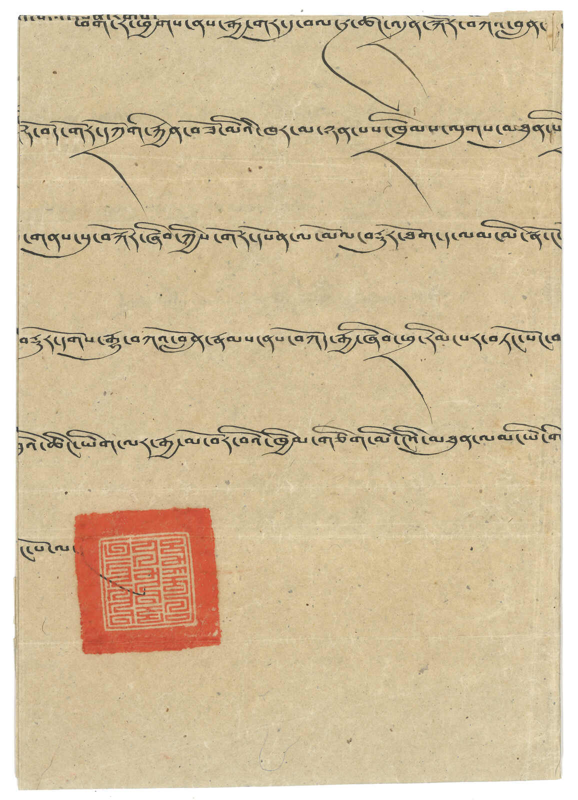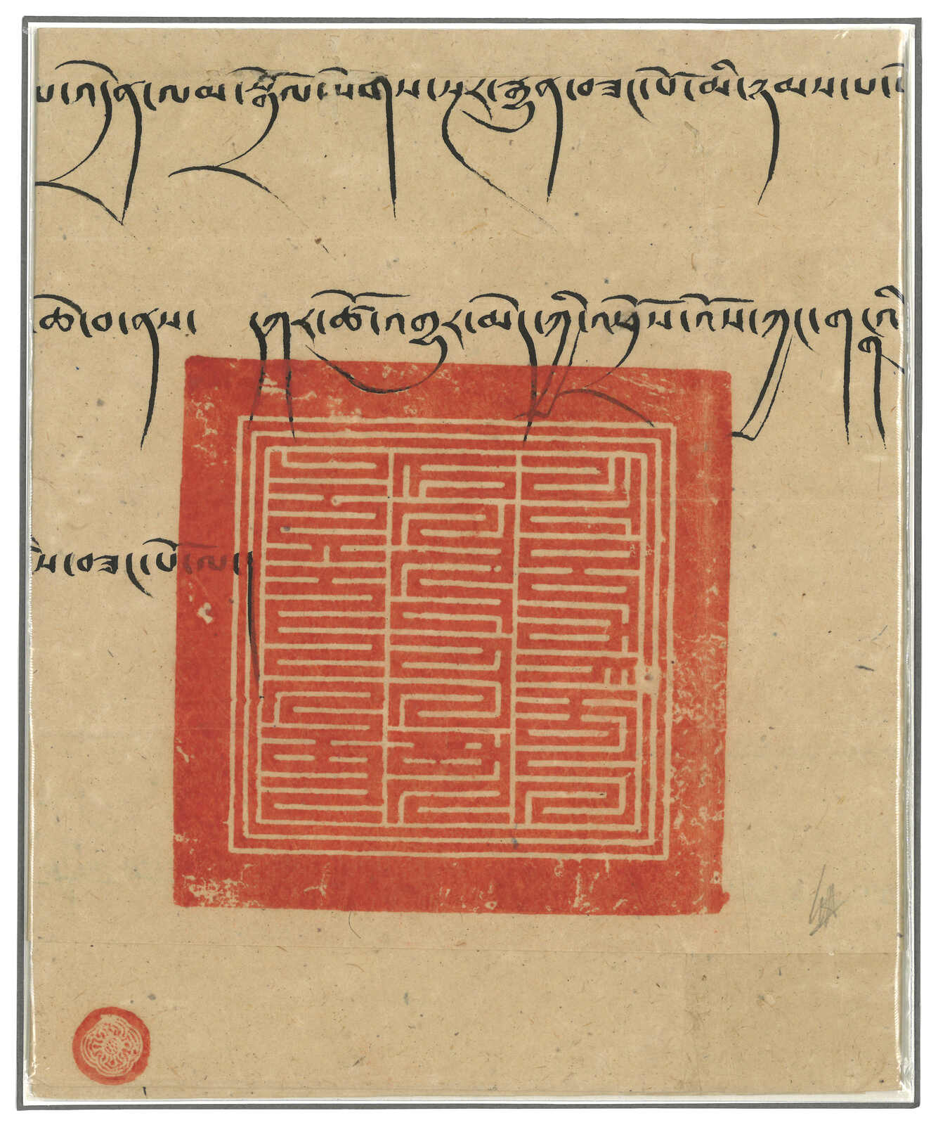 1899 letter applied with the Great seal of Tibet, The Golden King (Dawson no. 1), alongside with Dalai Lama small red seal (Dawson no. 7). This seal dates from 1578 when Altan Khan was converted to Buddhism and was inherited to