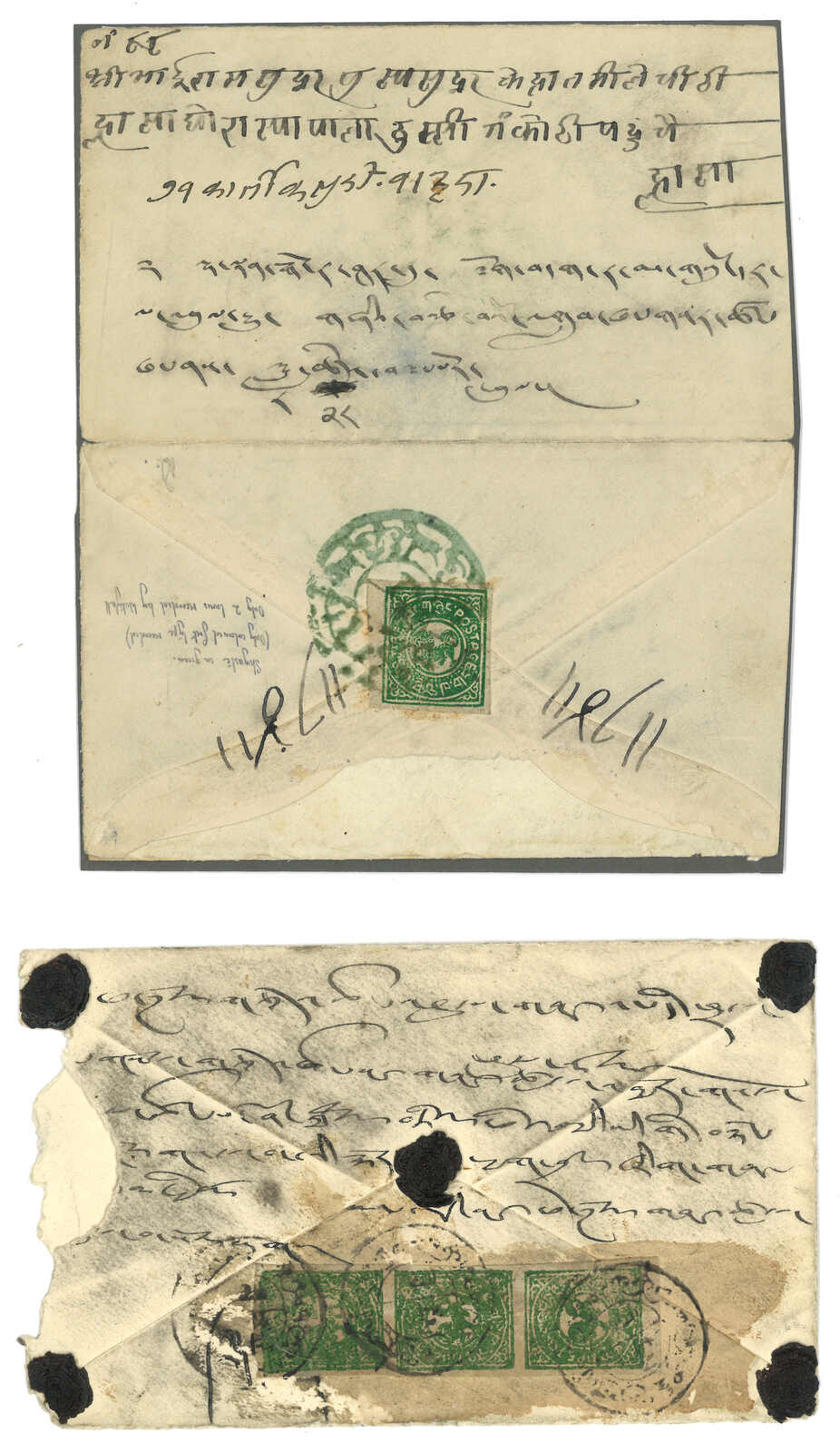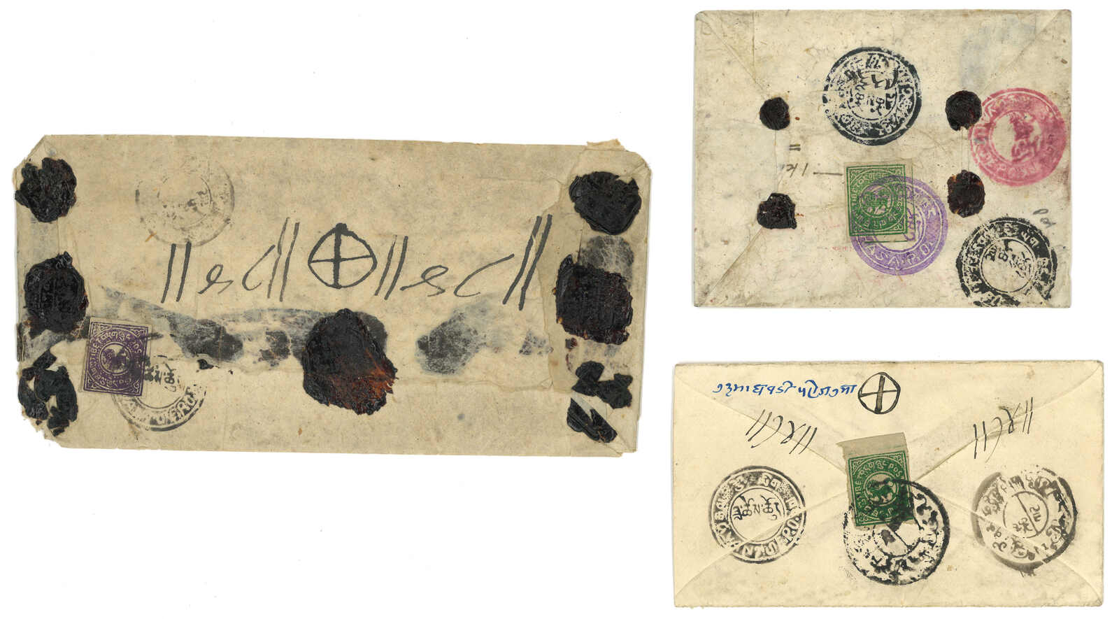 一組三件蓋有西藏喇嘛火漆之信封封底及剪片。(Image 1)