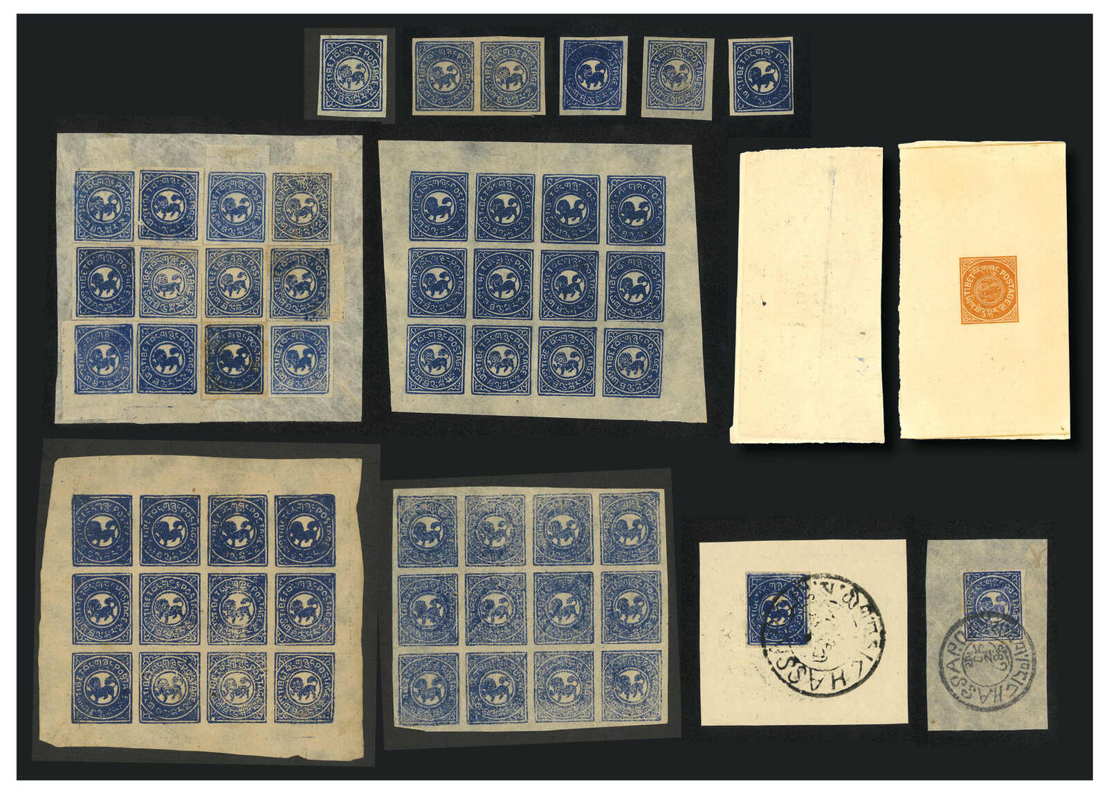 1912年一組西藏獅圖第一版郵票集藏,包含兩件華德路樣票、 數件1/3章噶、重組全張、新票及蓋銷剪片。乃組集之良好基礎。(Image 1)