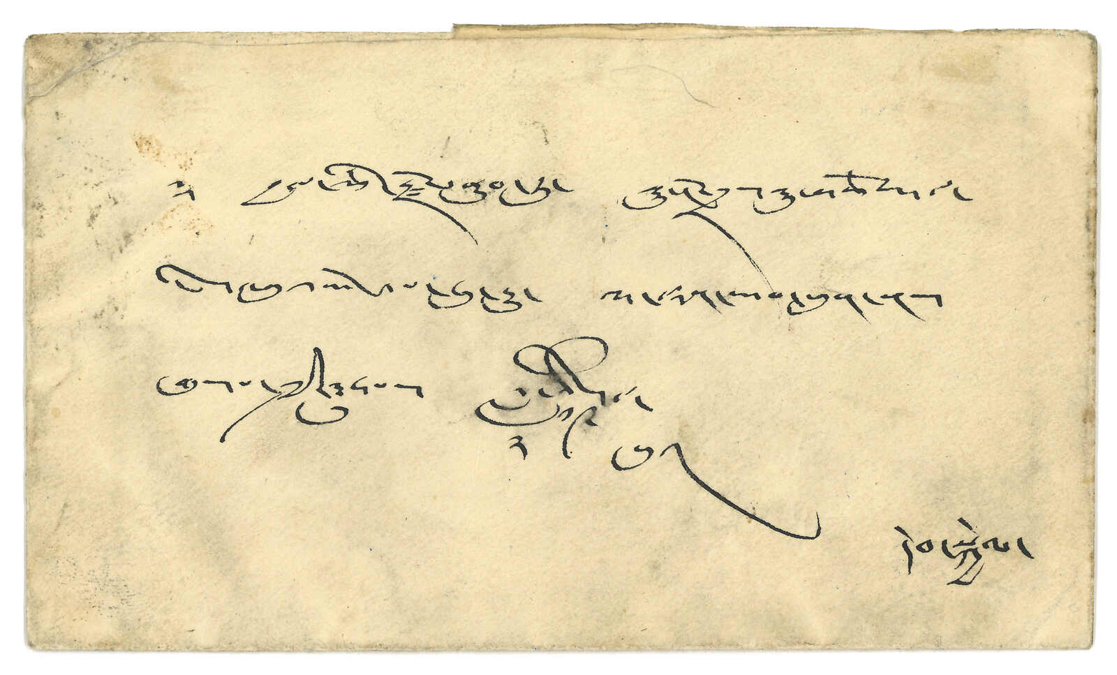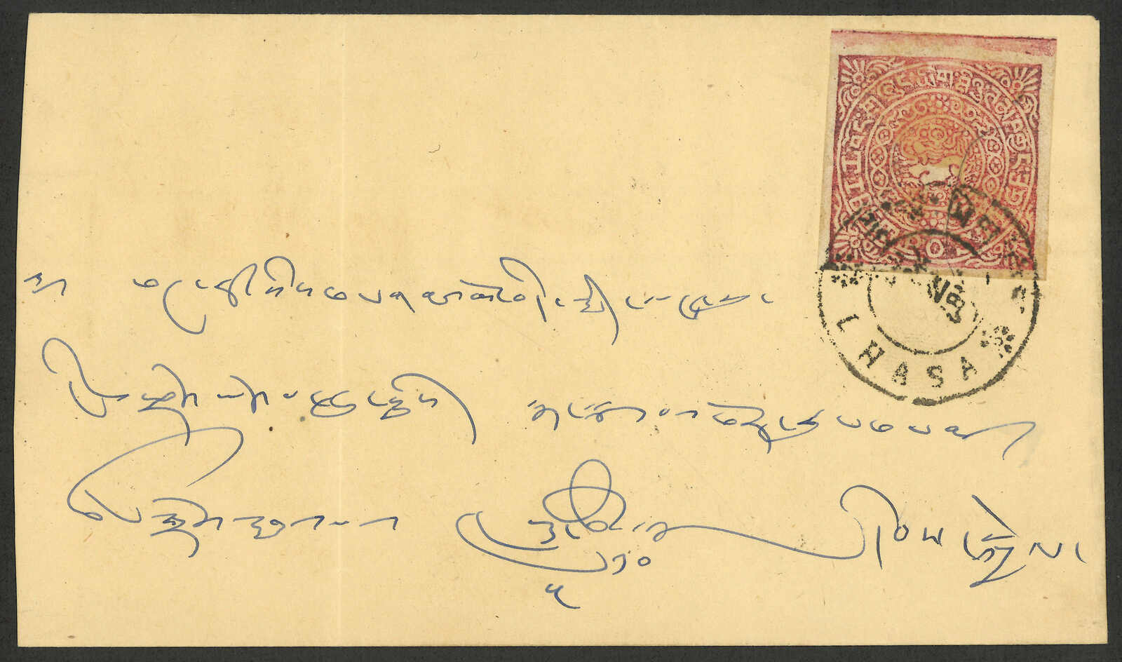 ND Lhasa cover, f.w. Tibet 3rd issue 2/3tr on reverse, probably cliche 5 proof, tied by Lhasa h.s.