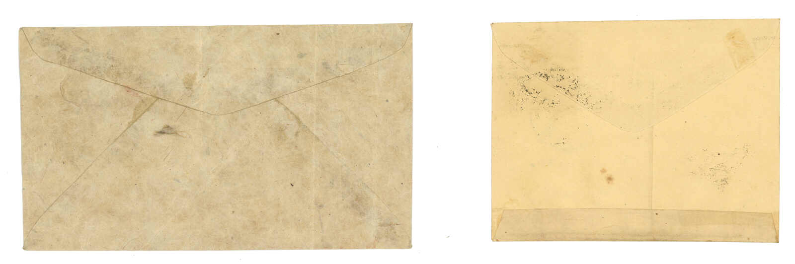 一對貼用西藏獅圖第二版之實寄封,分別貼4章噶及8章噶單枚,銷不同款式之拉薩戳記。由於面額高 昂,貼用第二版之實寄封可遇不可求。貼4章噶票的一件附Geoffrey Flack證書。(Image 1)