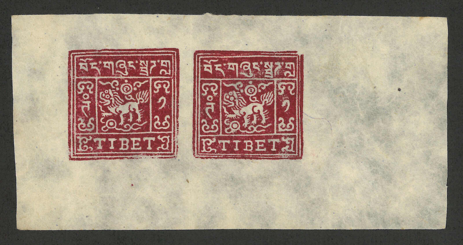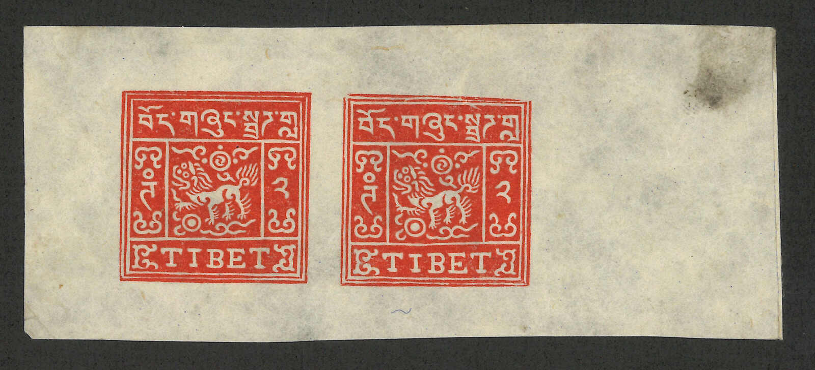 1933 Tibet 3rd issue 2/3tr proof pair, position 3 and 5, with wide margin at 3 sides.