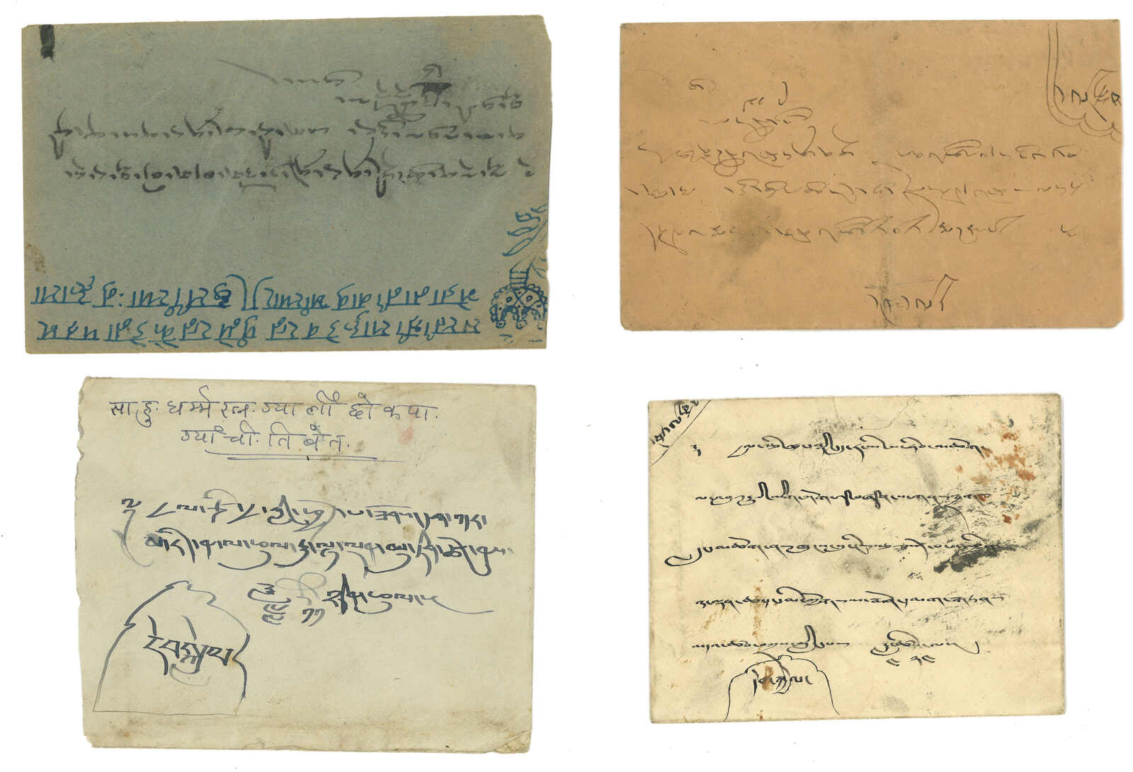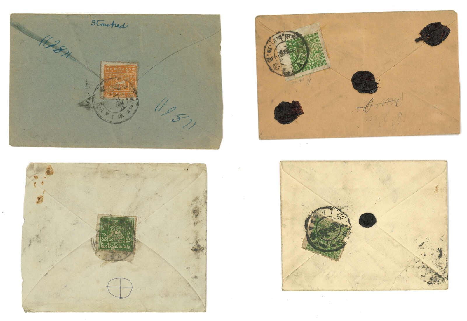 一組四件貼用西藏獅圖第三版有齒票之實寄封,分別單貼1/2章噶及4章噶。