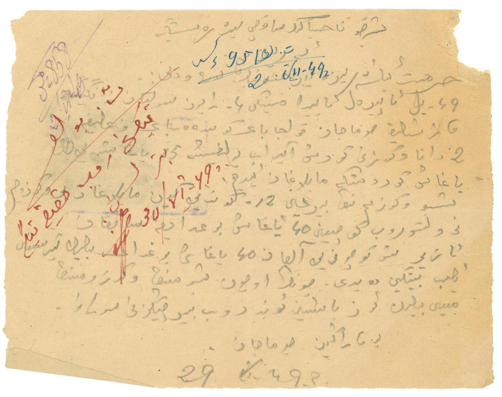 1948 (23 Jun) Petition letter by a Han citizen to the government, f.w. East Turkestan Republic construction issue $10 in sheet of 20, consisted of two and a half pane of 8, tied by pencil stroke. Rare.