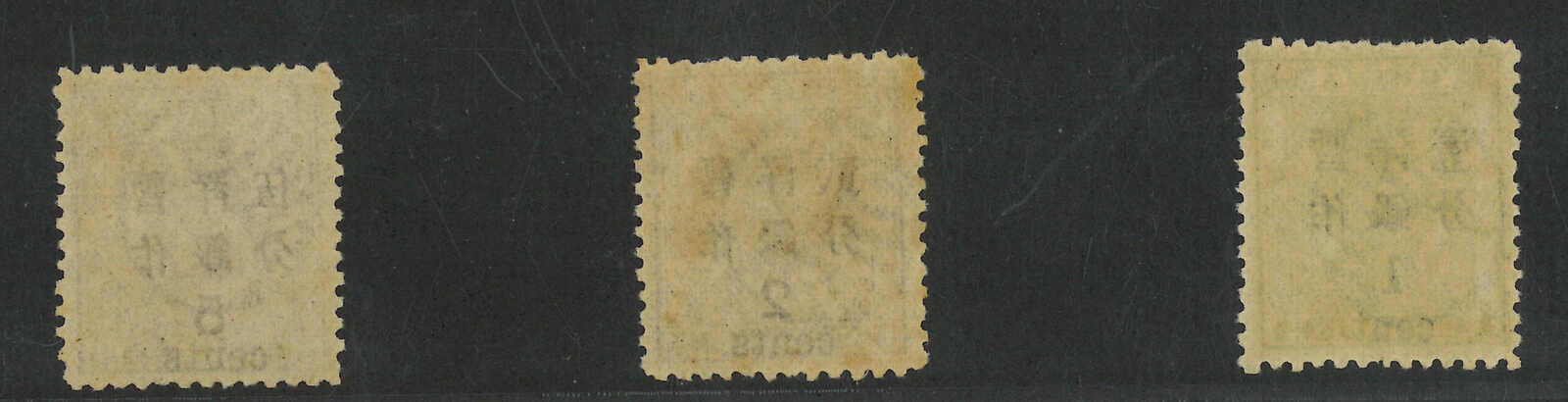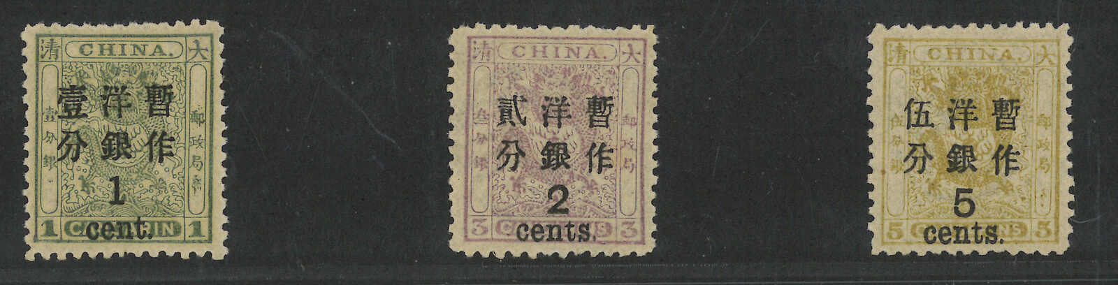 1897 Small Dragon surch large figure complete set (Chan 34-36), MNH with original gum.