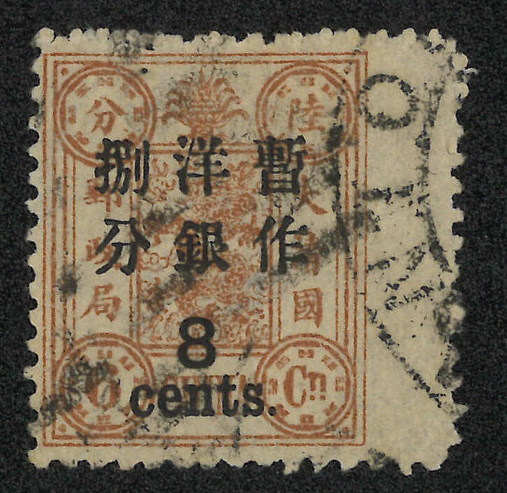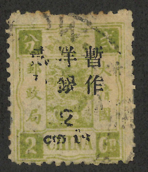 1897年慈壽再版加蓋大字長距2分蓋2分銀,帶多處嚴重之破版變異(陳目58),銷大圓戳或海關日戳。相當稀罕難得。(Image 1)