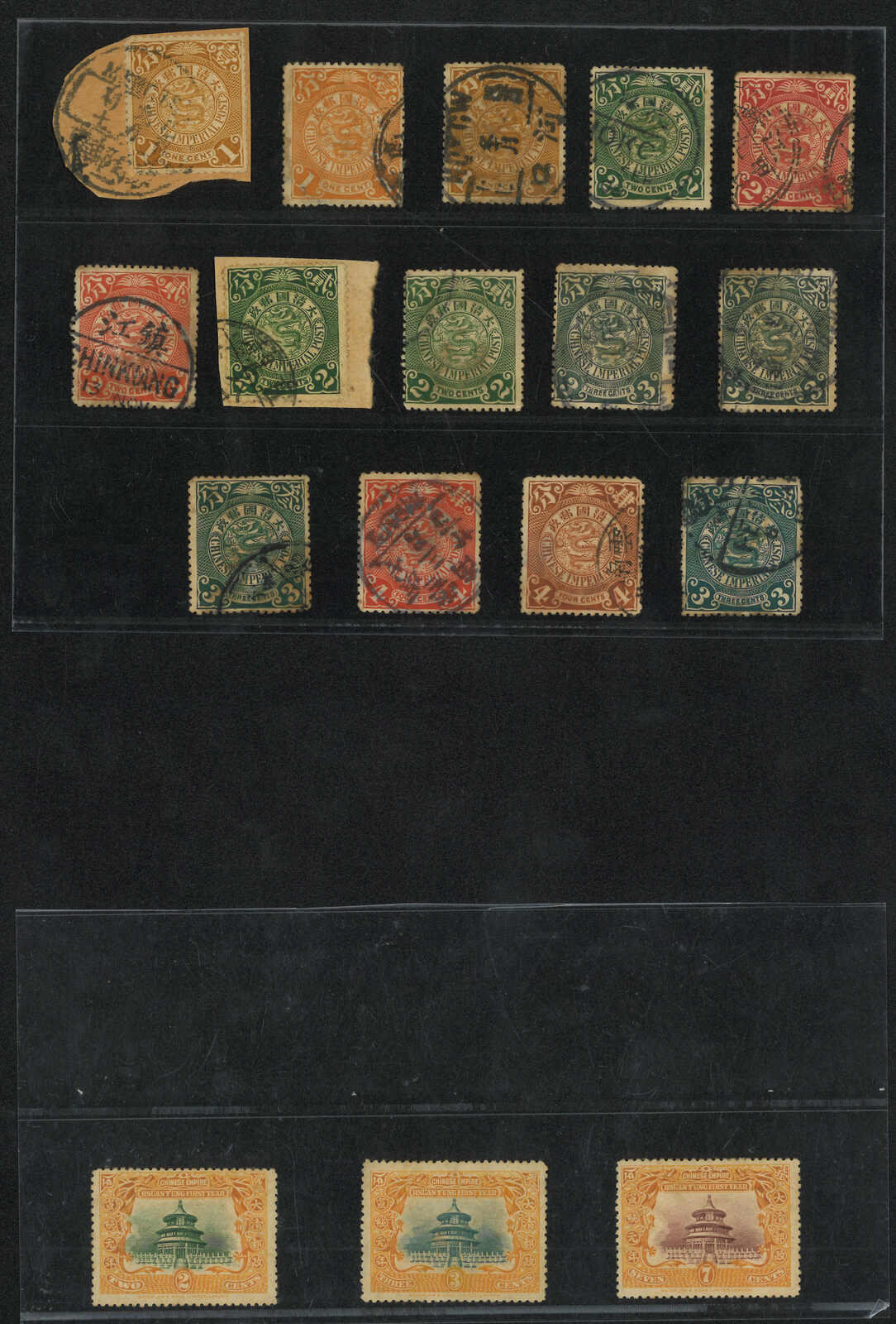 806 o imageA group of 14 Coiling Dragon used stamps and piece, mostly tied by Yunnan cds. Plus a complete mint set of Hsuan Tung issue.