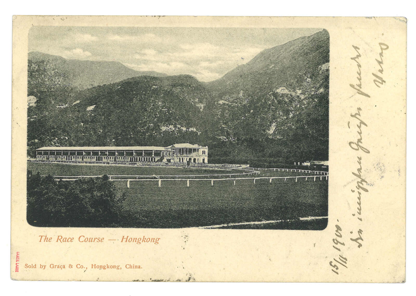 131 cover image1900 Whampoa (15 Nov) to Germany. Horse racing course PPC, applied with Whampoa bisected bilingual origin cds. Transit Canton Chinese PO (16 Nov). F.w. Hong Kong QV 4c, tied by Canton Webb type 1 IPO tie-print and Hong Kong cds. Arrived Hamburg (20 Dec). 2009 (Mar) John Bull, lot 2505,