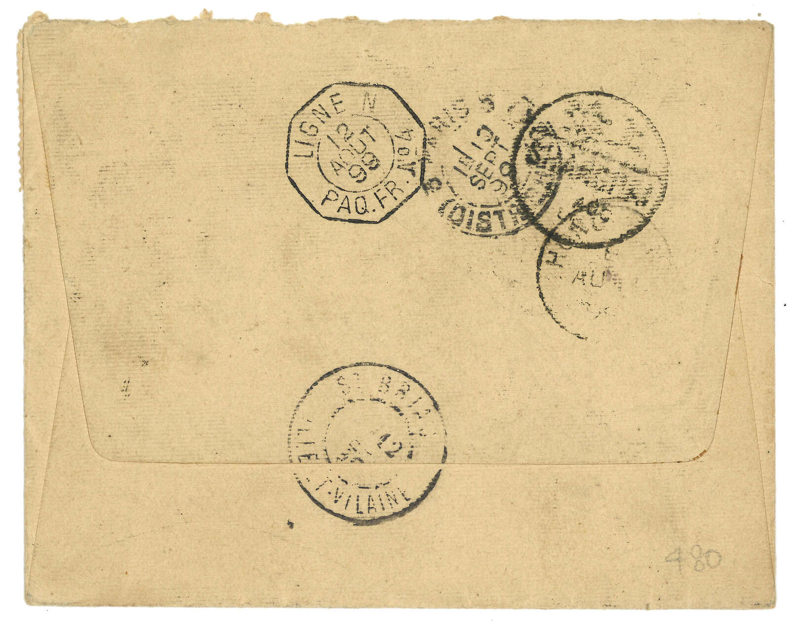 1型騎縫戳及上海英局日戳。8月經香港,8.12經法國郵船。抵法國。2007.11 蘇黎世亞洲,拍品號1346。(Image 1)