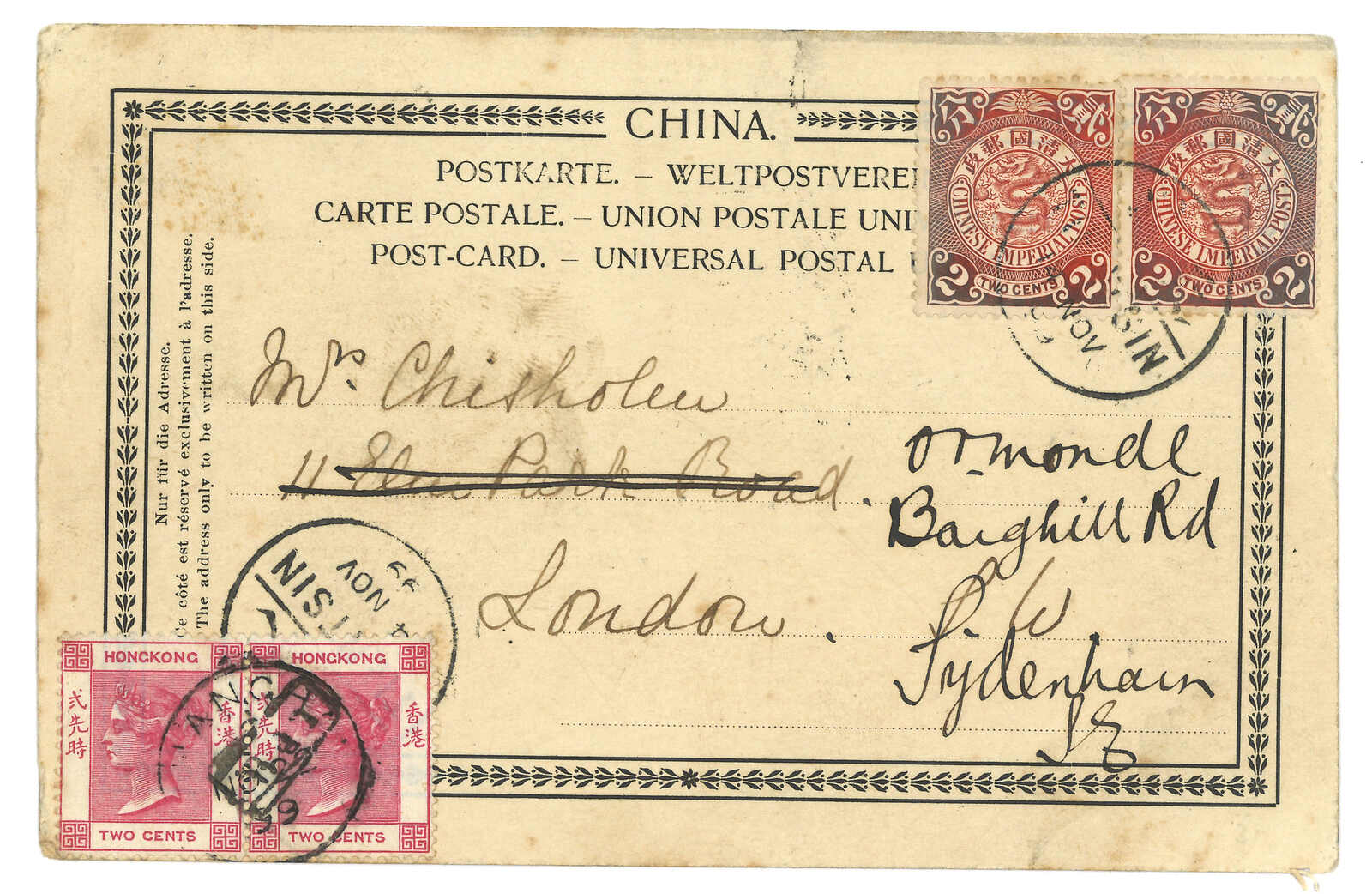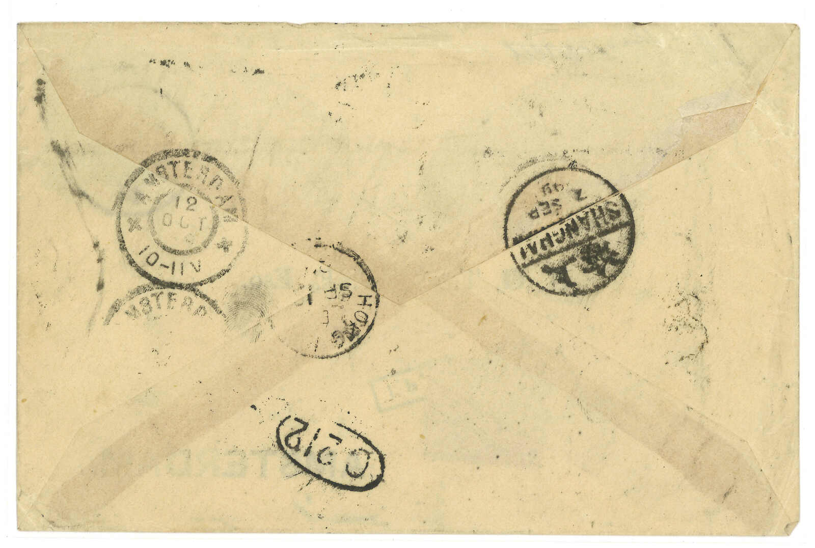 Shanghai BPO (7 Sep) cds. Transit Hong Kong (10 Sep). Arrived Amsterdam (12 Oct). 2009 (Mar) John Bull, lot 2540.
