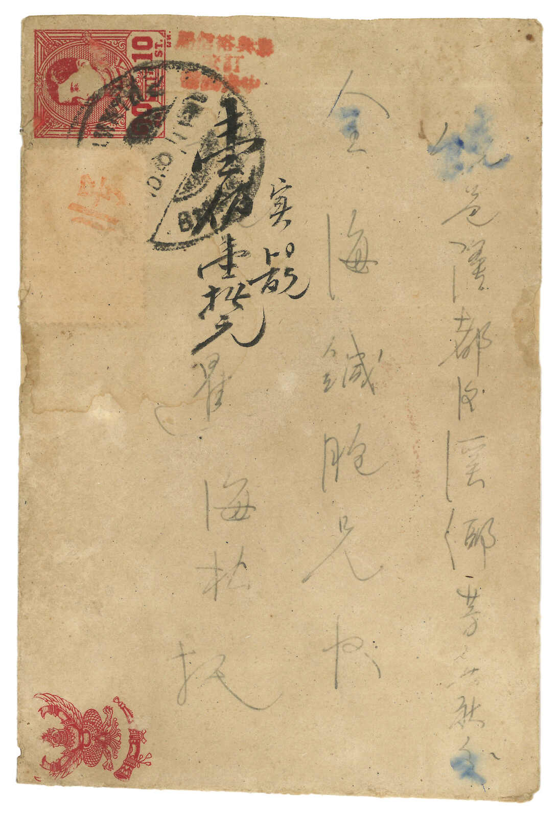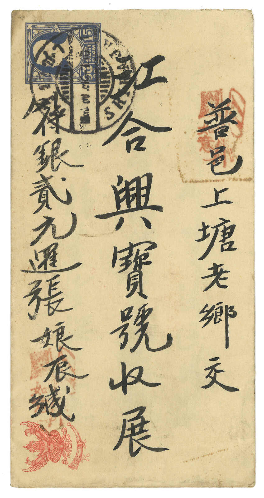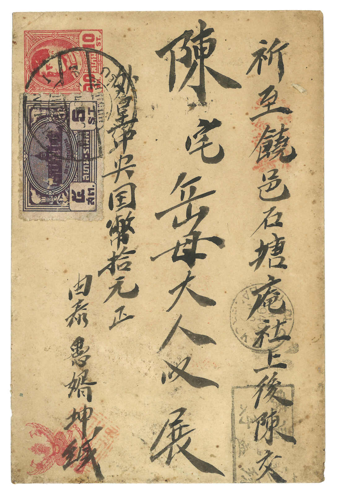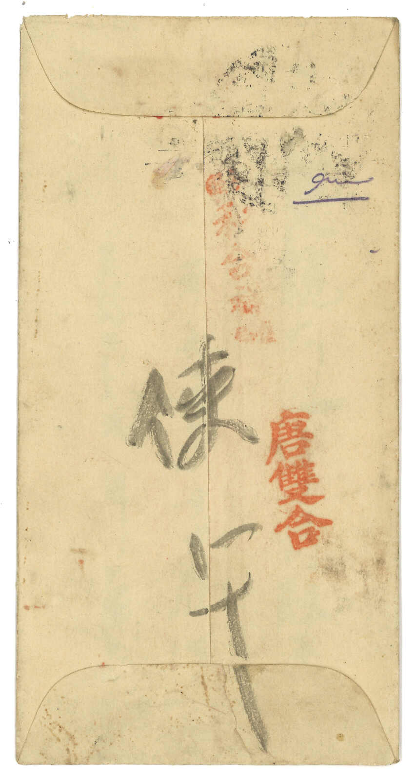 one extra mail when checked by Meihsien Post Office. Double international postage due 50c was therfore imposed. Only a few incoming Qiaopi with postage due franking to China exist. 15 stg stationery cover was issued in 1929 for Qiaopi correspondence