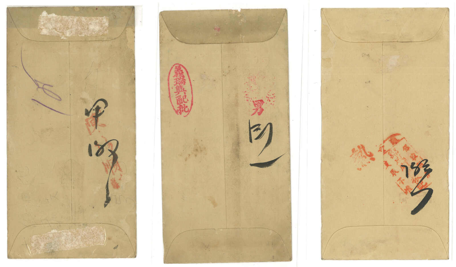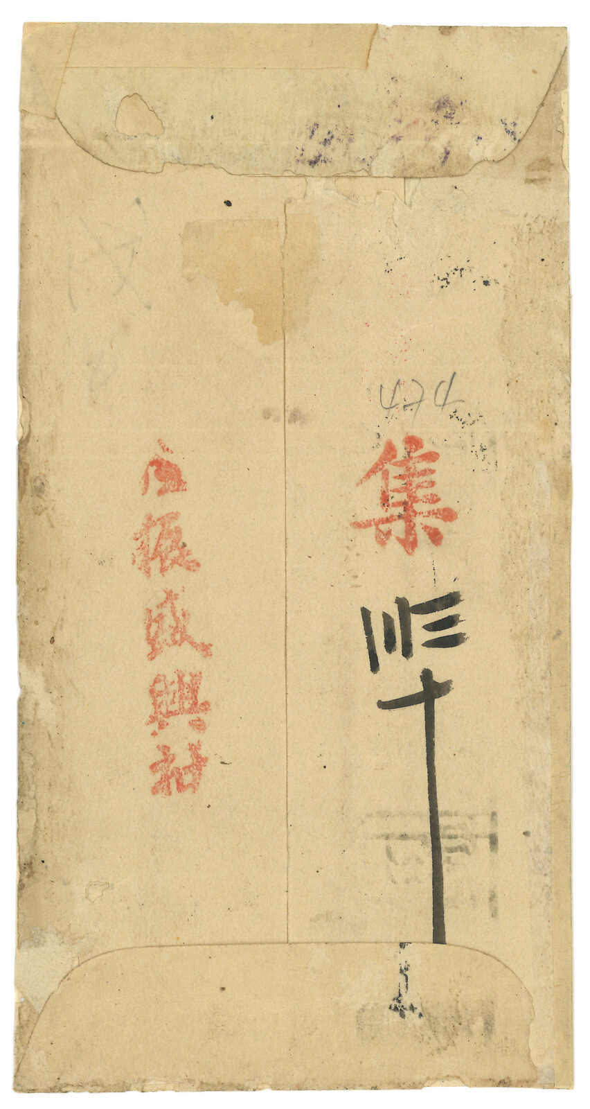 背面鈐橢圓形郵局准許自帶戳及僑批局戳。正面蓋有“中央法幣”直戳。封剖開以作展示。出自西北暹羅之郵例較少見。(Image 1)