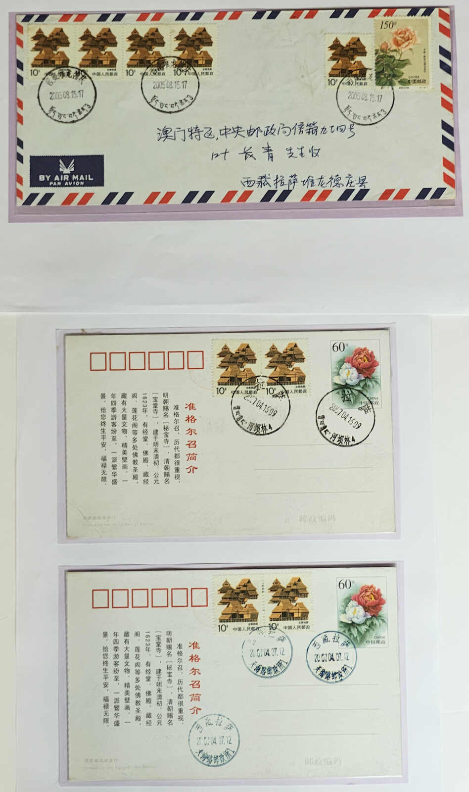 929 cover image2000s a group of 36 covers from Chinese borderlands including Sinkiang, Tibet, Inner Mongolia etc, includng commemorative covers with beautiful franking.