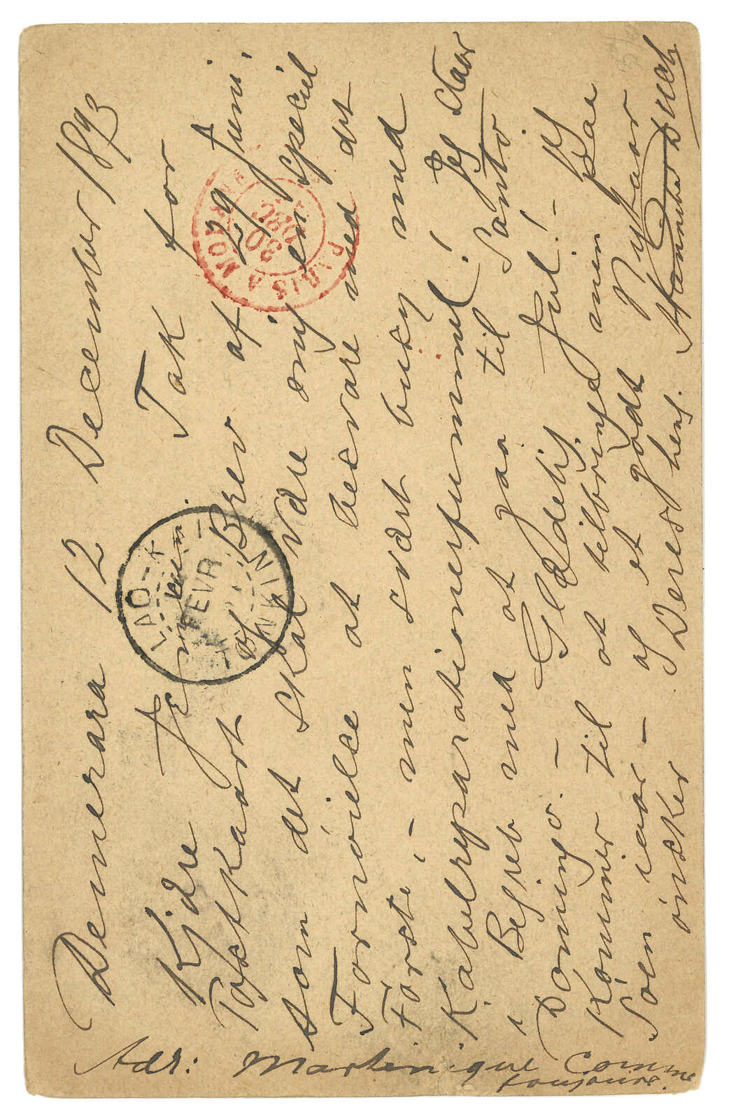 1893.12.13 英屬圭亞那2分郵資片,自George Town寄蒙自海關,銷George Town日戳。12.28經倫敦,2.4經河內,2.14經老街。此為經印支東京進口雲南之最早例子。 馬蘭茂著《雲南郵政史1901-1949》第21頁圖三原件。 2019年中泰聯合郵展特刊第67頁原件。 2020年8月《今日郵政》752期第22頁原件。(Image 1) (Image 2)