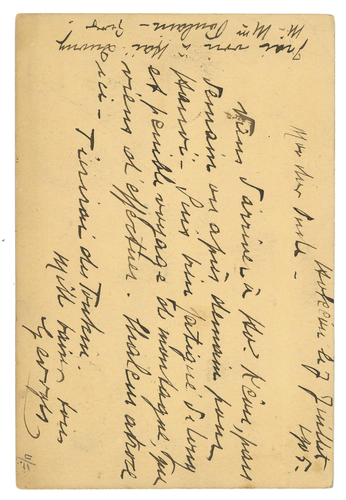 611 cover image1905 Hokow (9 Aug) to France. CIP 2nd Print PSC, uprated by Coiling Dragon 1c + 2c, tied by Yunnan Hokow double-ringed lunar year cds, alongside with bisected bilingual cds. Transit Laokay (12 Aug).