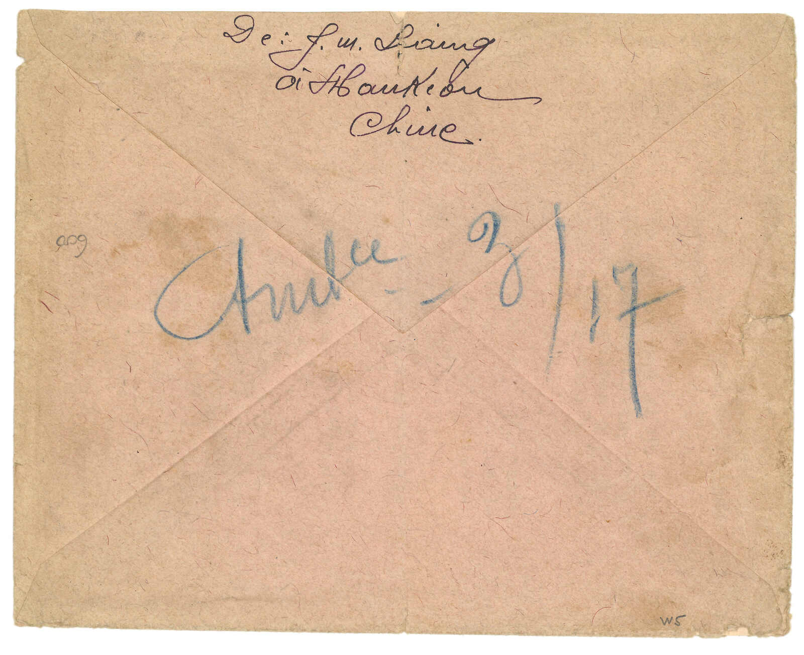 615 cover image1911 Kokiuchang (23 May) to USA, f.w. Coiling Dragon 10c, tied by Kokiuchang lunar year bilingual cds. Transit Ami (24 May), Hokow (26 May), Haiphong (27 May), Hong Kong (30 May). Rare origin.