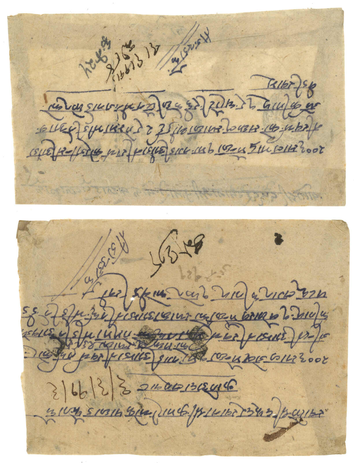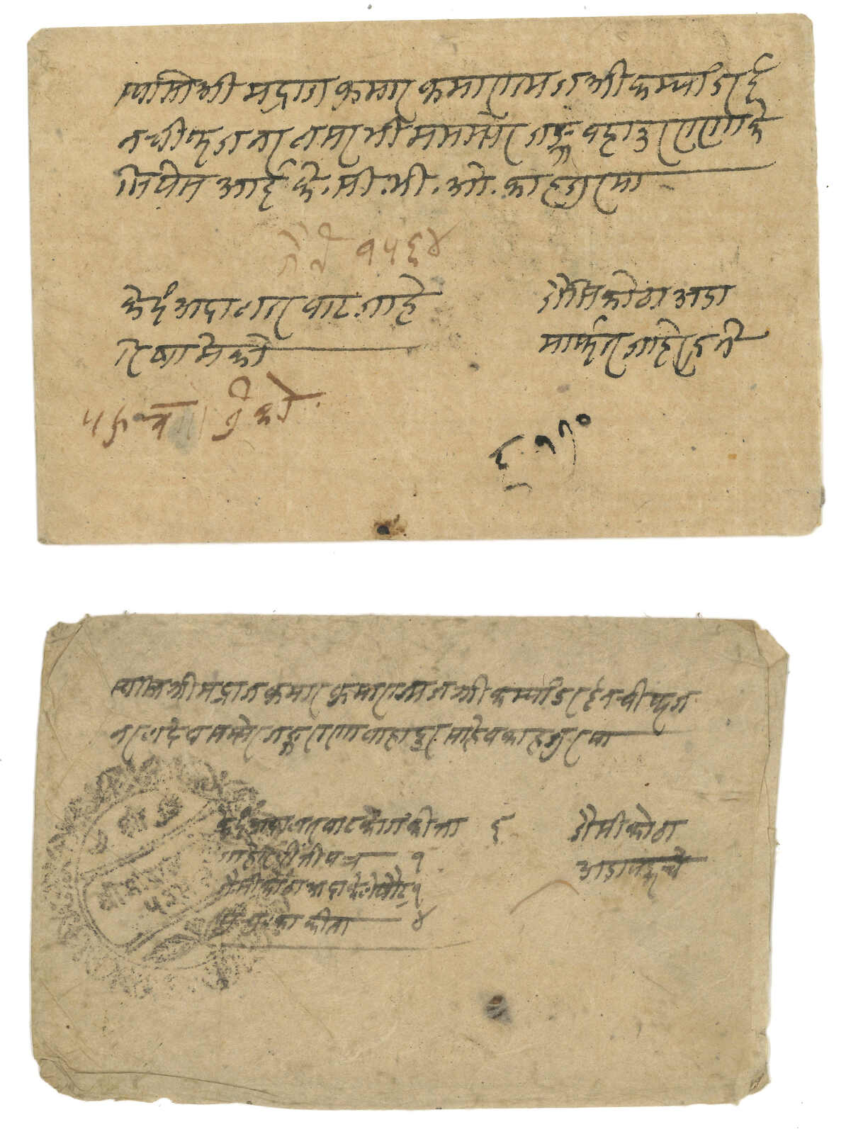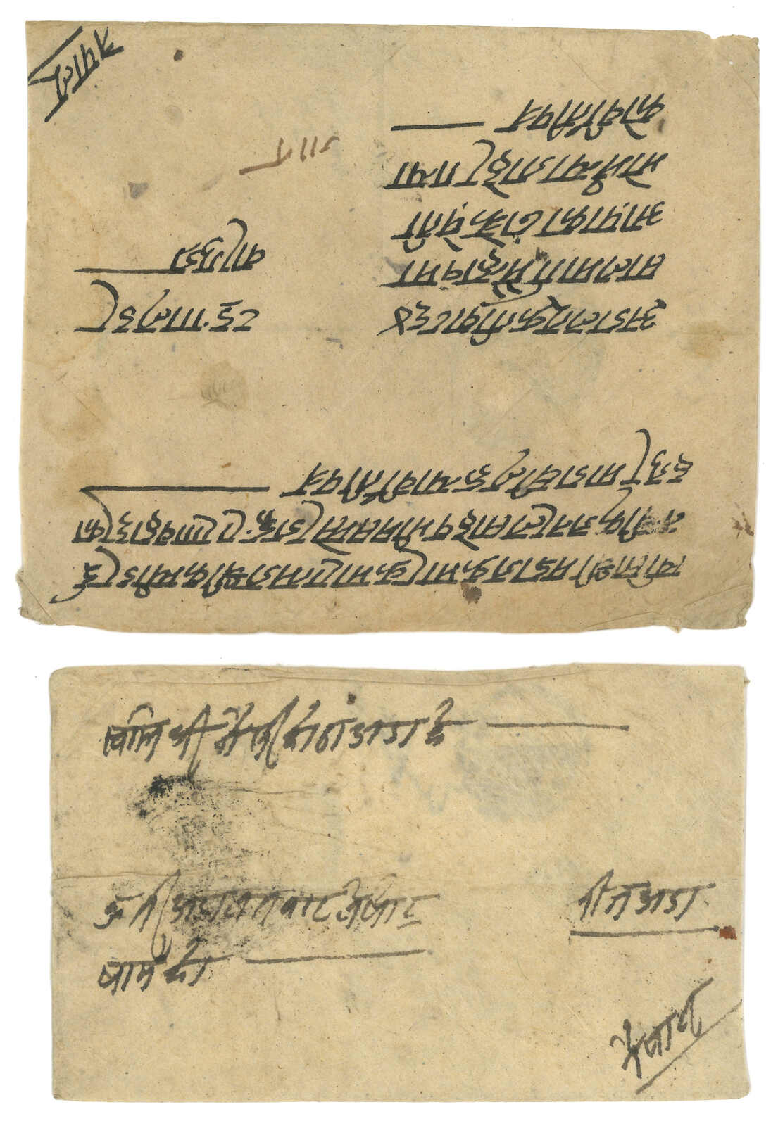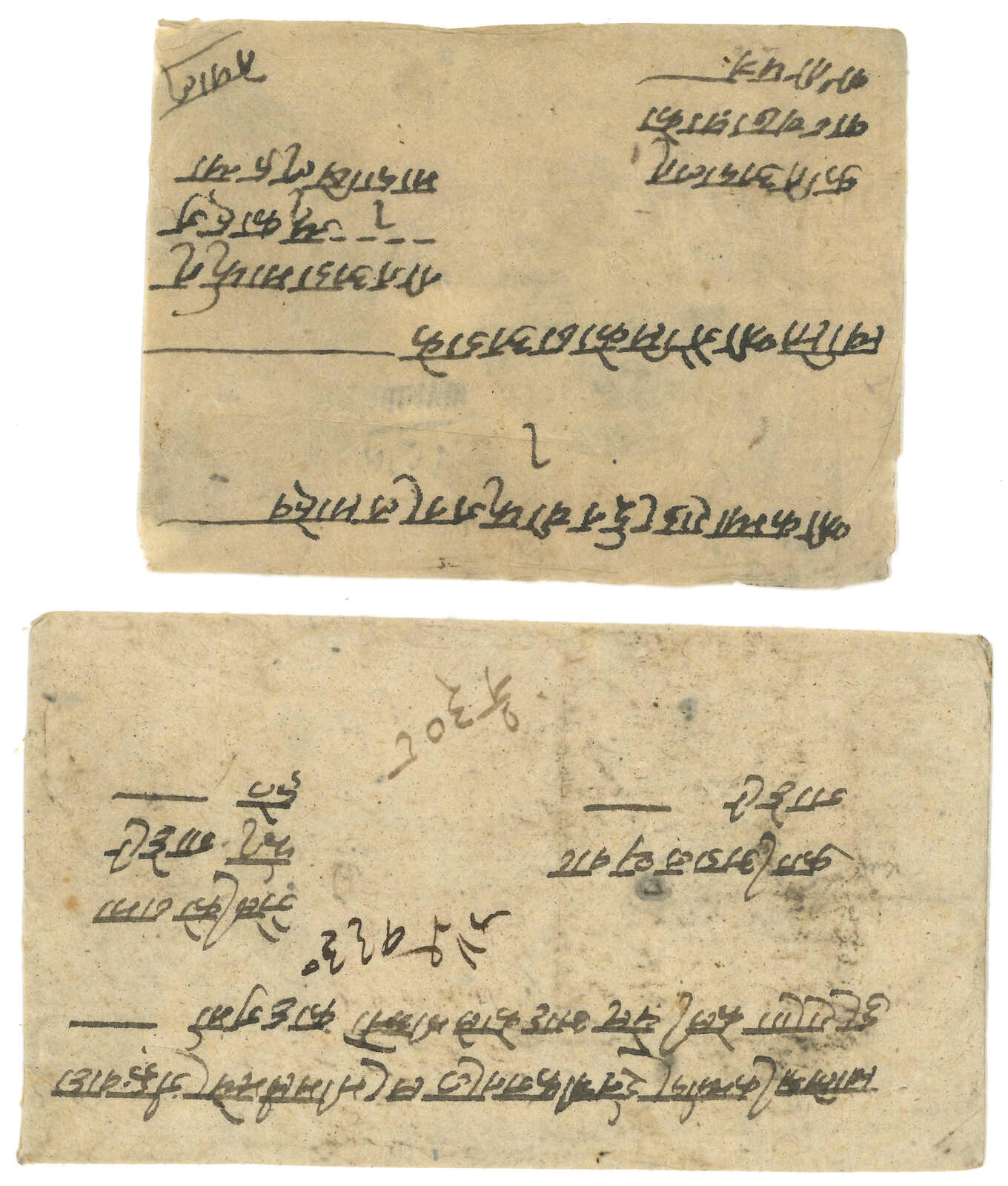 約1900年代一對尼泊爾法庭公函,一件出自聶拉木,一件出自濟隴, 另附一件聶拉木法庭公章剪片。兩件信封均帶有法庭公章。(Image 1)