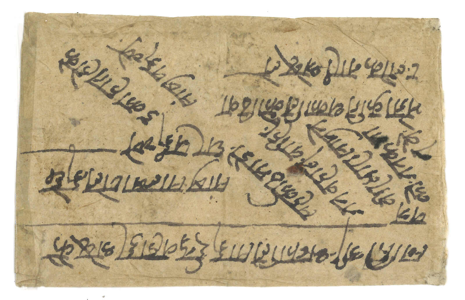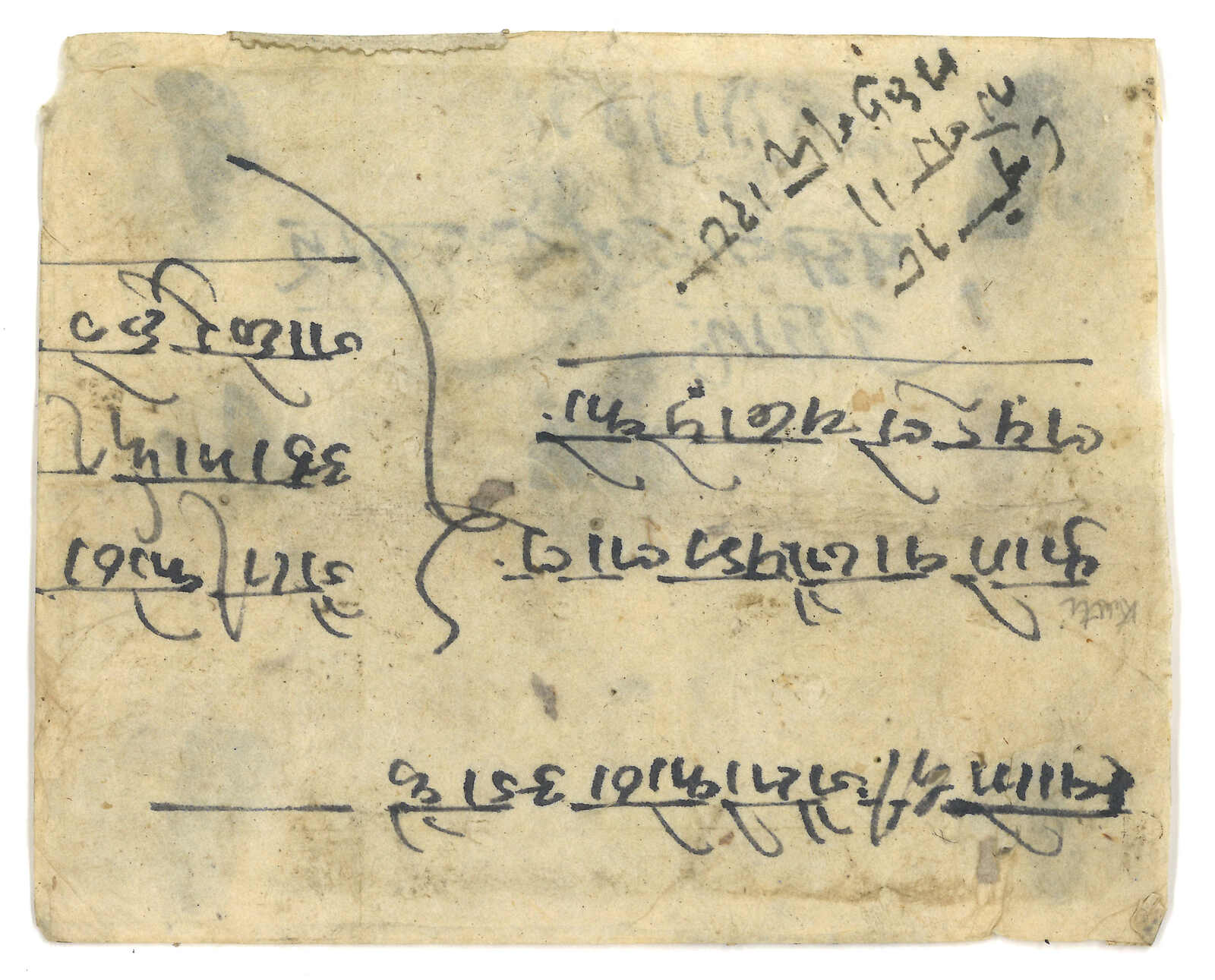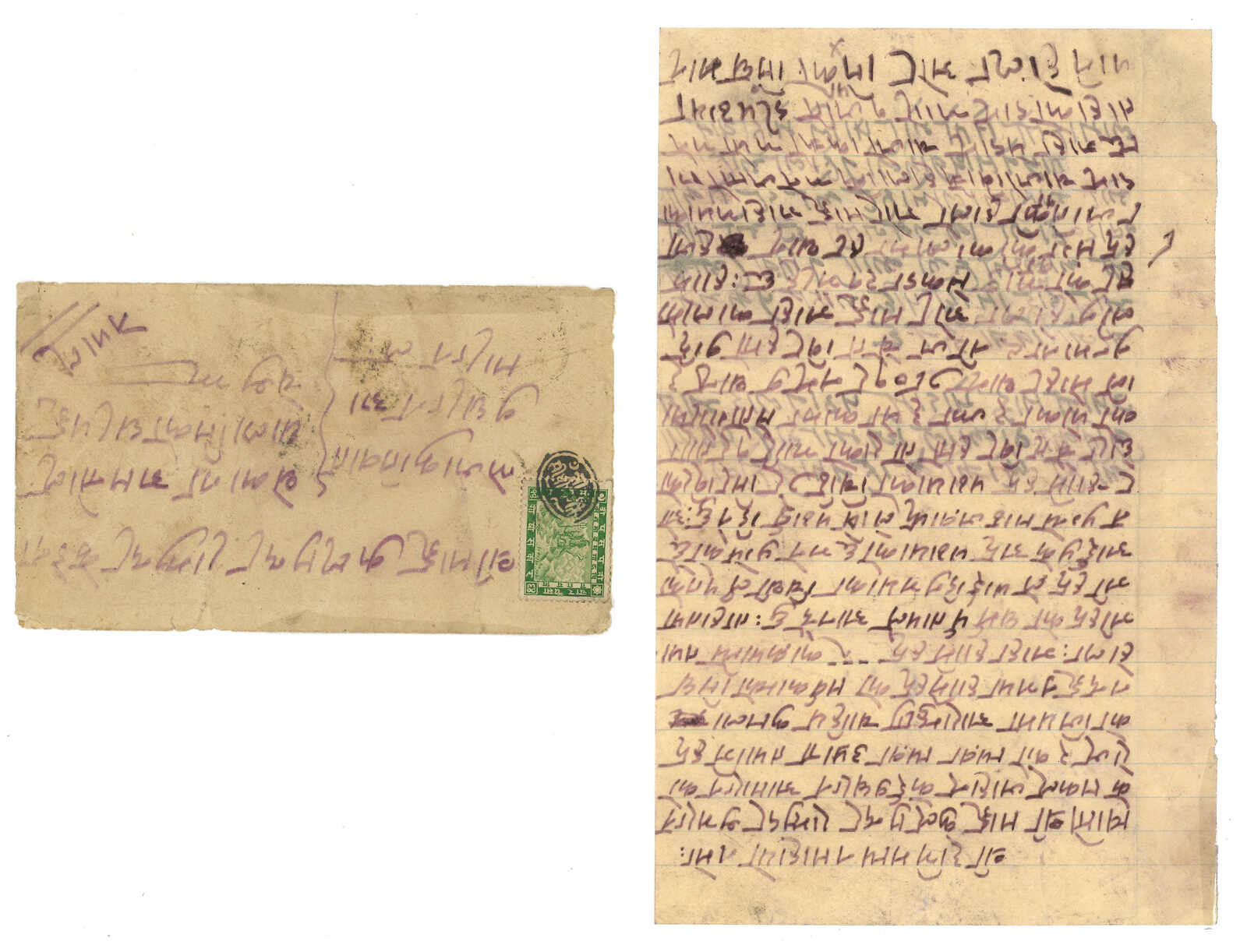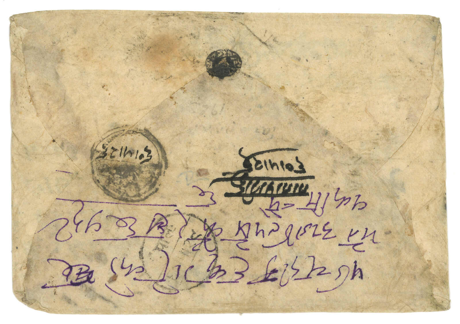 1908 Nepal (22 Oct) to Kuti, f.w. Nepalese Siva Mehadeva 4p, tied by Kathmandu black seal. Transit Tatapani (25 Oct) with manuscript. Arrived Kuti with annotation. Probably the only existing incoming cover from Nepal to Kuti.