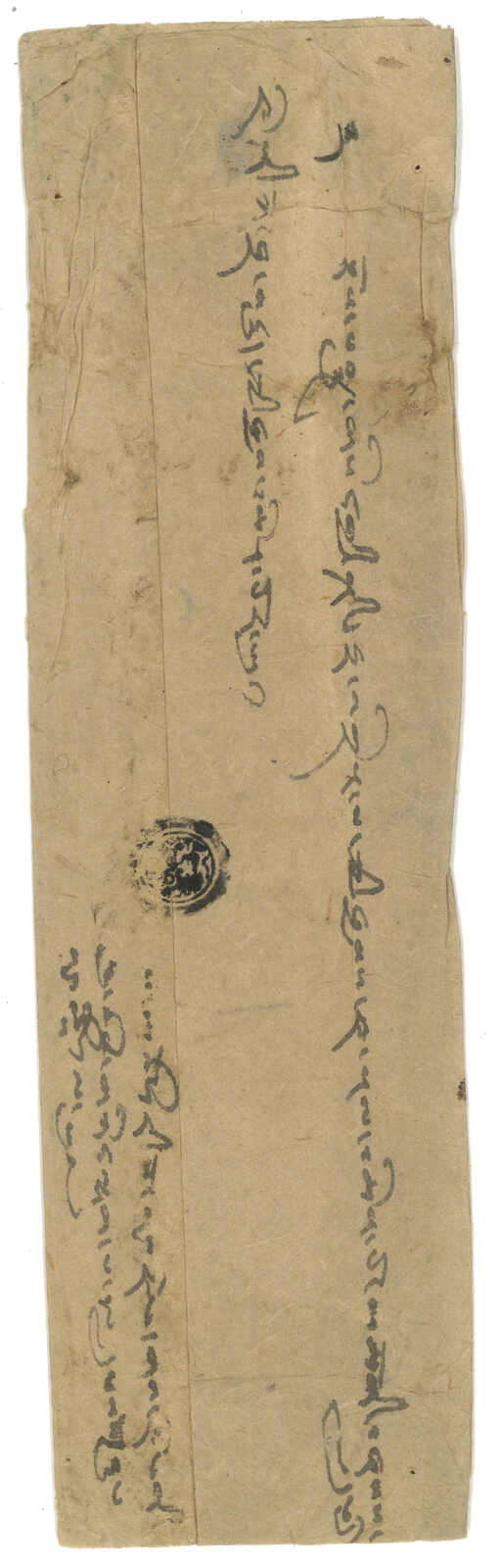 1896 (May) official cover from Kerong to Kathmandu, showingRasuwa and Kathmandu manuscript as postmarks. With small circular black seal.