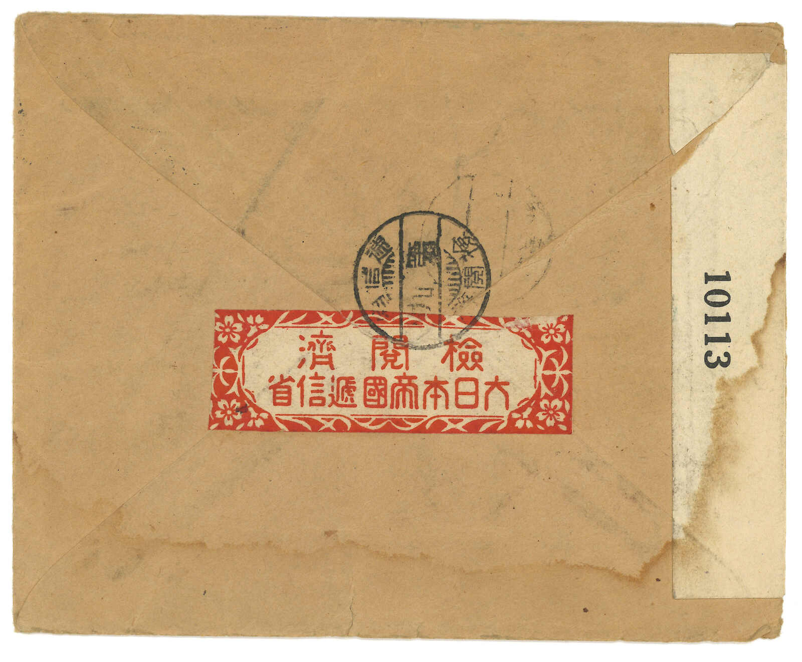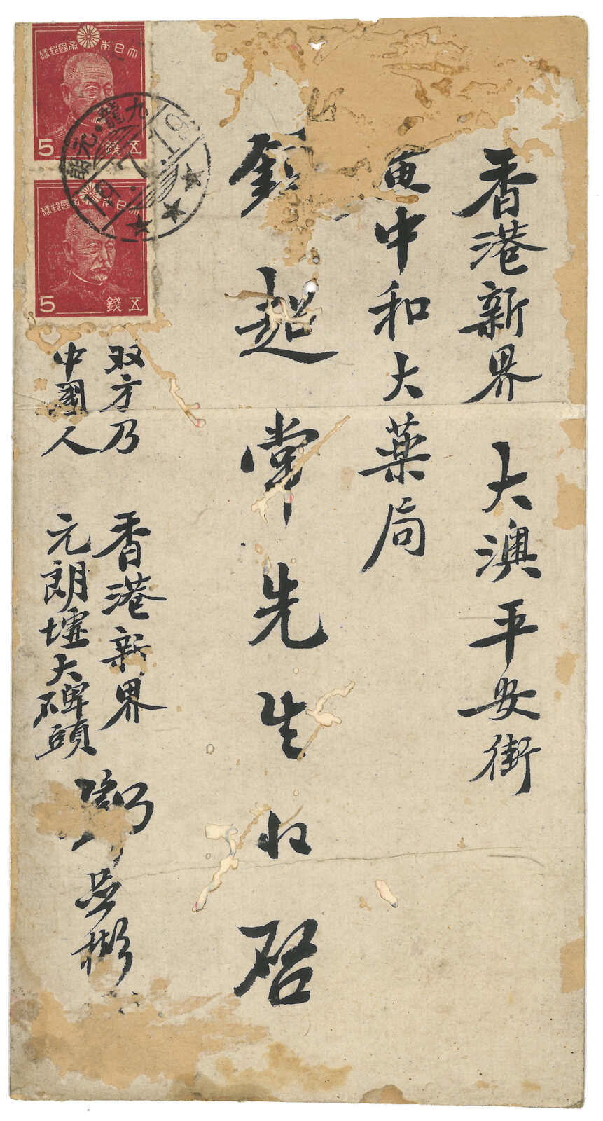 此為日佔時期出自大埔郵局之唯一實寄封,因而極為稀罕難得。Philippe Orsetti舊藏。Hong Kong Study Circle 2002年Wilde Cup得主。2017.12 Interasia,拍品號4579。(Image 1)