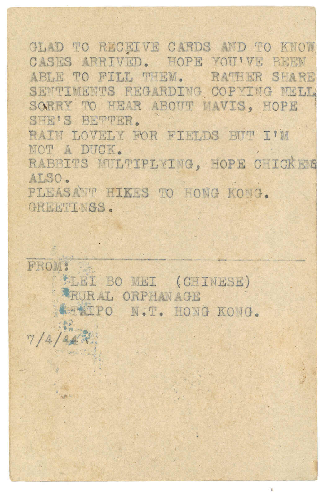 Internment Camp Censored" type JH2 mark and faint name seal of the censor. This camp was located between Sham Shui Po Camp and Kai Tak Airport. Rough edges but does not affect main body. Illustration in Dr. William Tong Cheuk Man's book.
