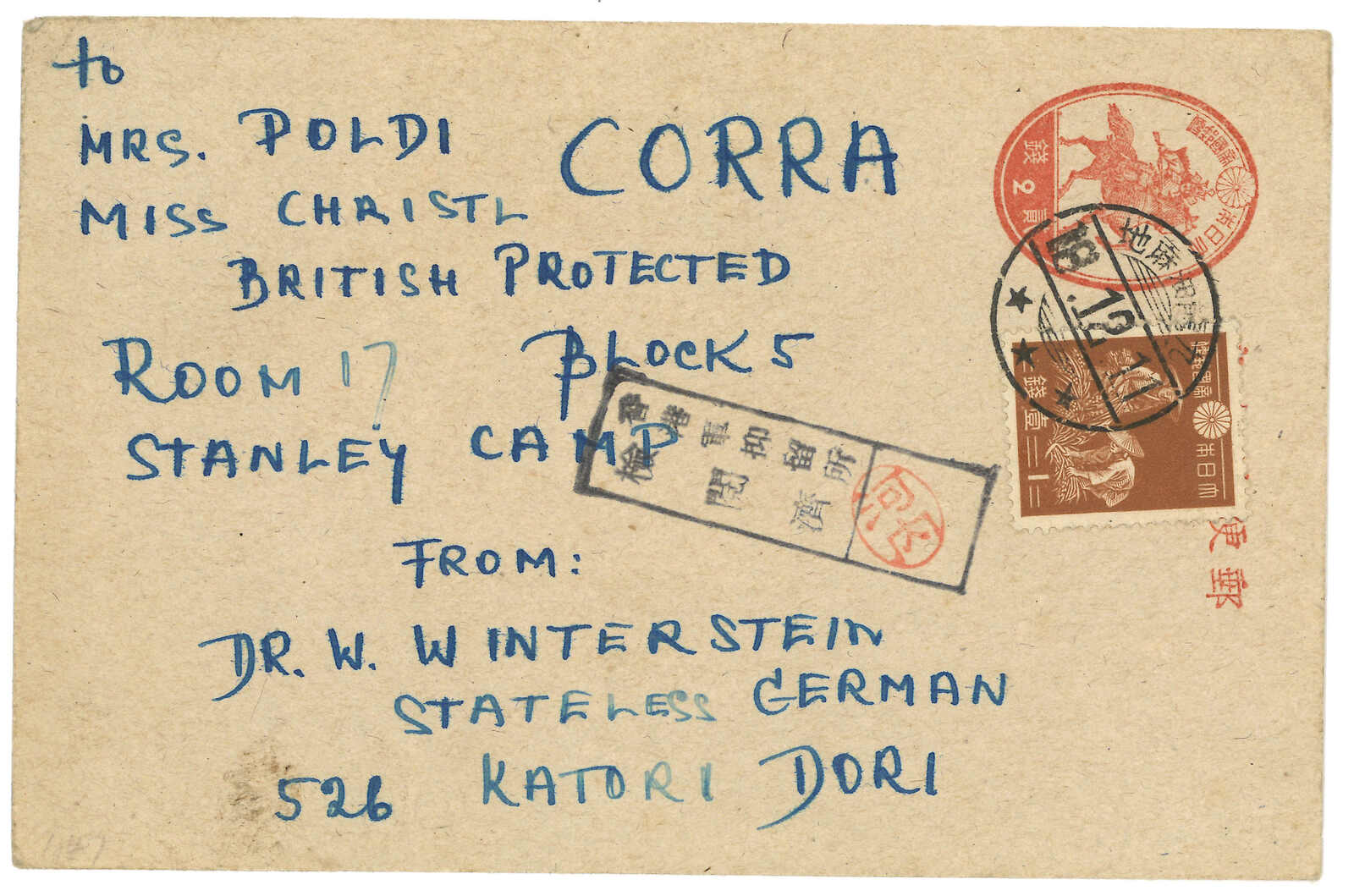 “Hong Kong Military Internment Camp” censor mark with name seal of the censor Kawauchi. Ex- Richard C K Chan.