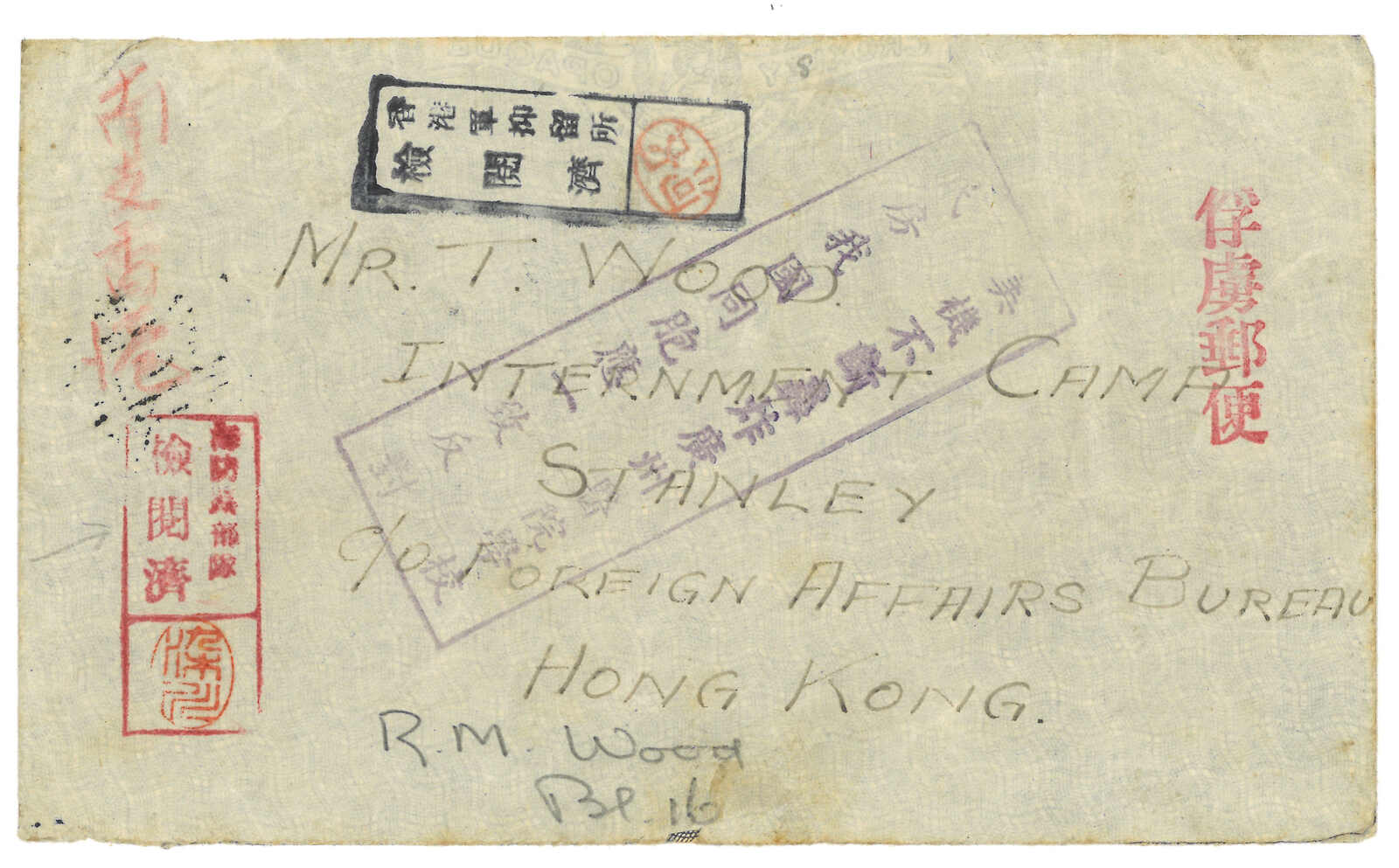 two different types of Japanese censor marks and name seals of censors. Unusual POW mails from mainland China to Hong Kong.