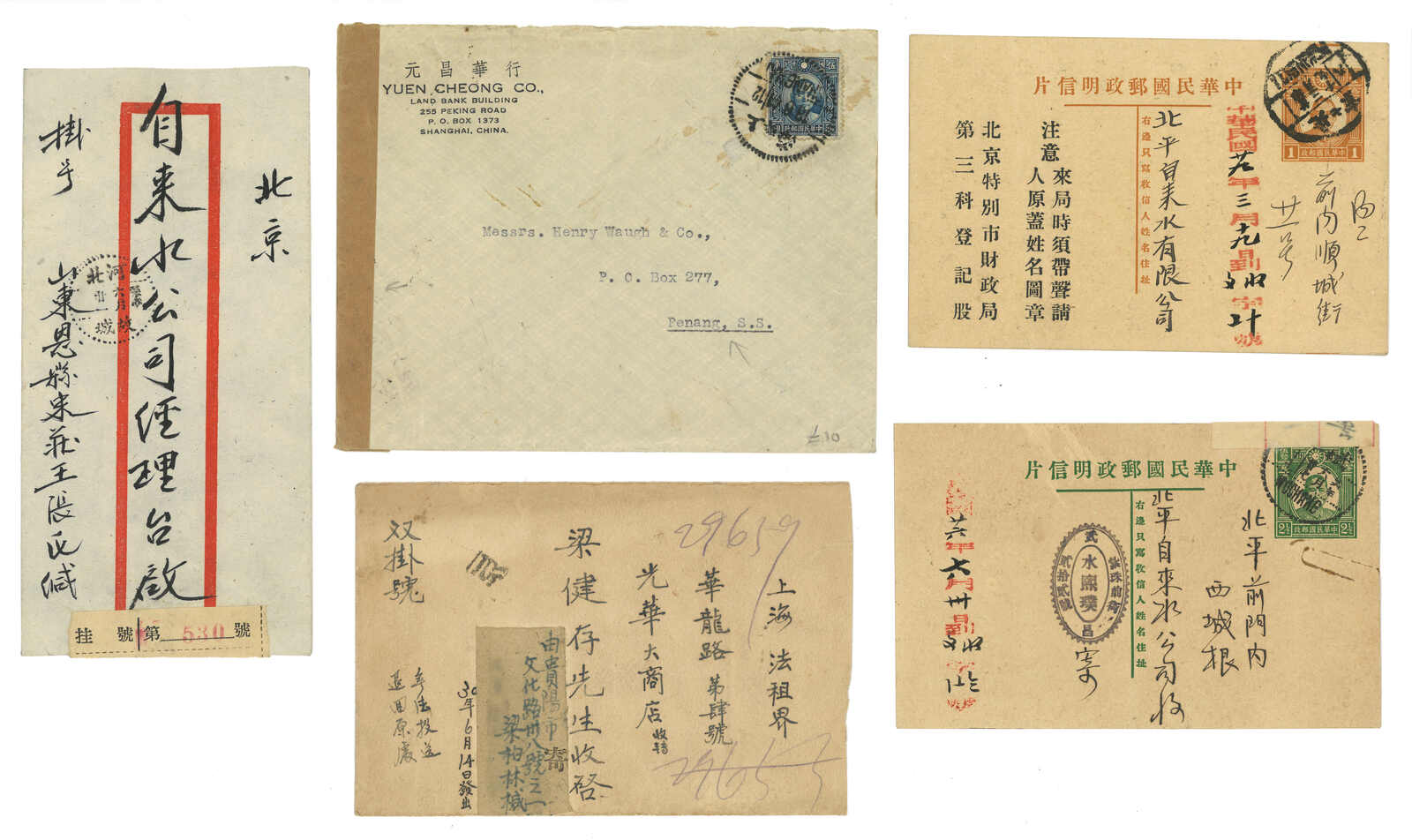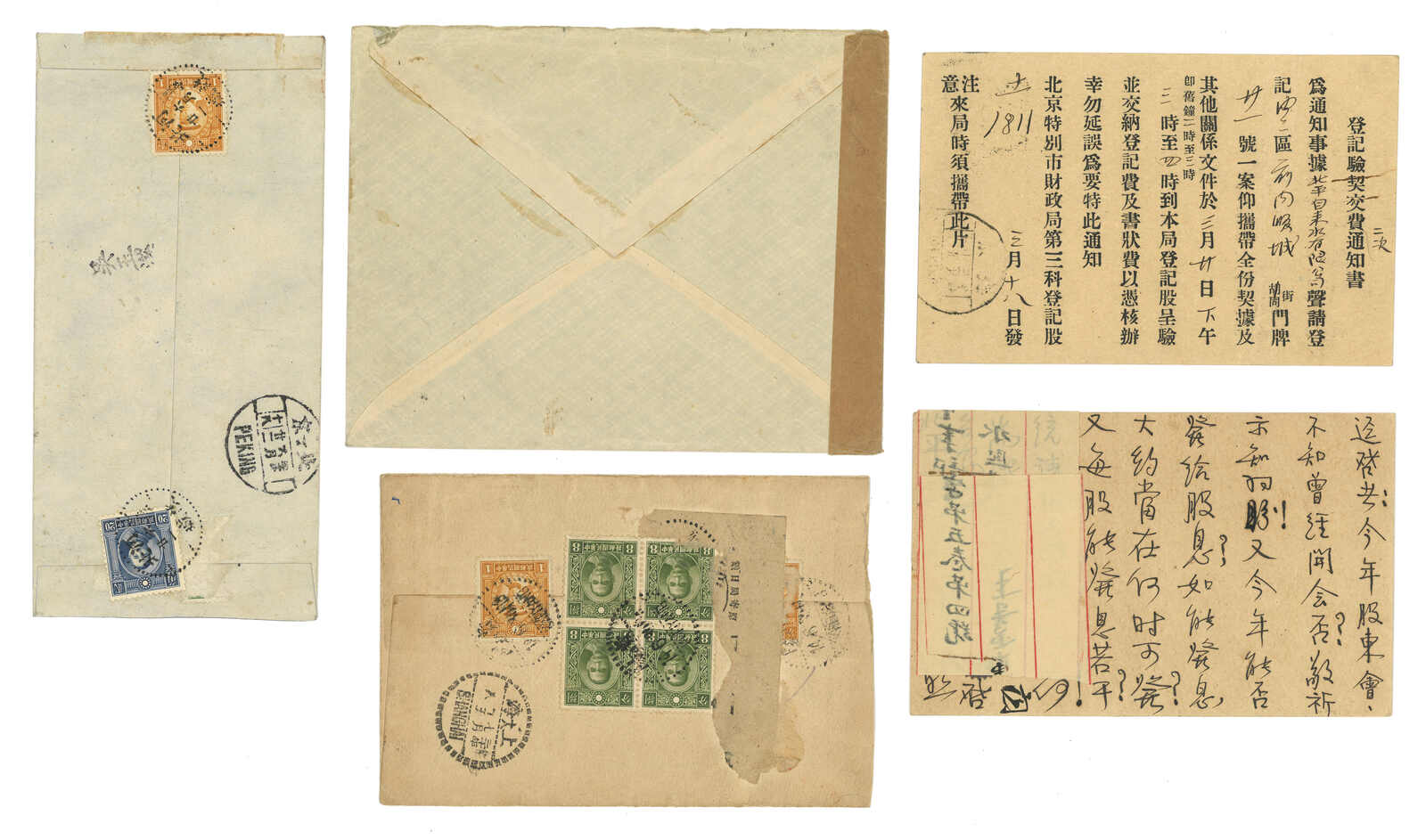 2325 image1937-1941 a group of 6 covers and stationery cards used in the early stage of Japanese occupation if Peking, all f.w. unovpt. issues, reflecting the early postal history of occupation.