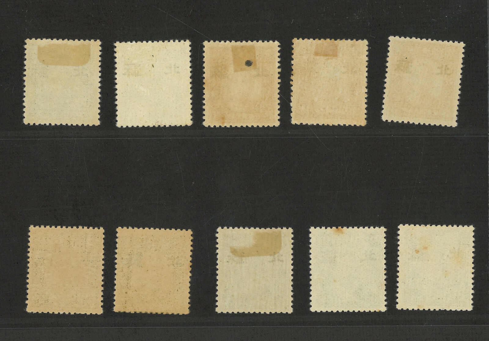 1941 Japanese occupied North China surch small figure “Supeh” on Hong Kong unwmk Print Martyrs complete set (Chan JN168-177), MNH/MLH. Very Fine.