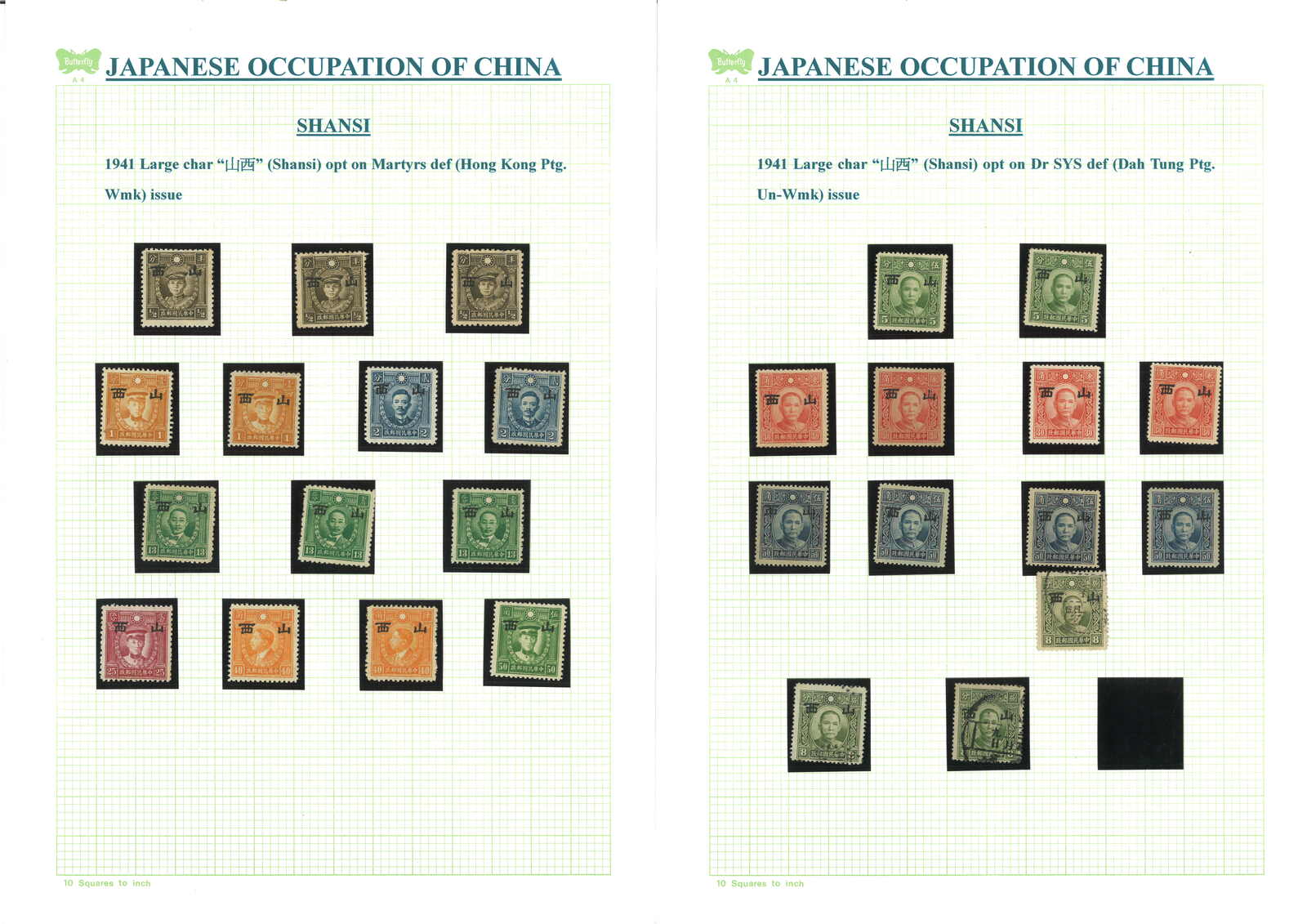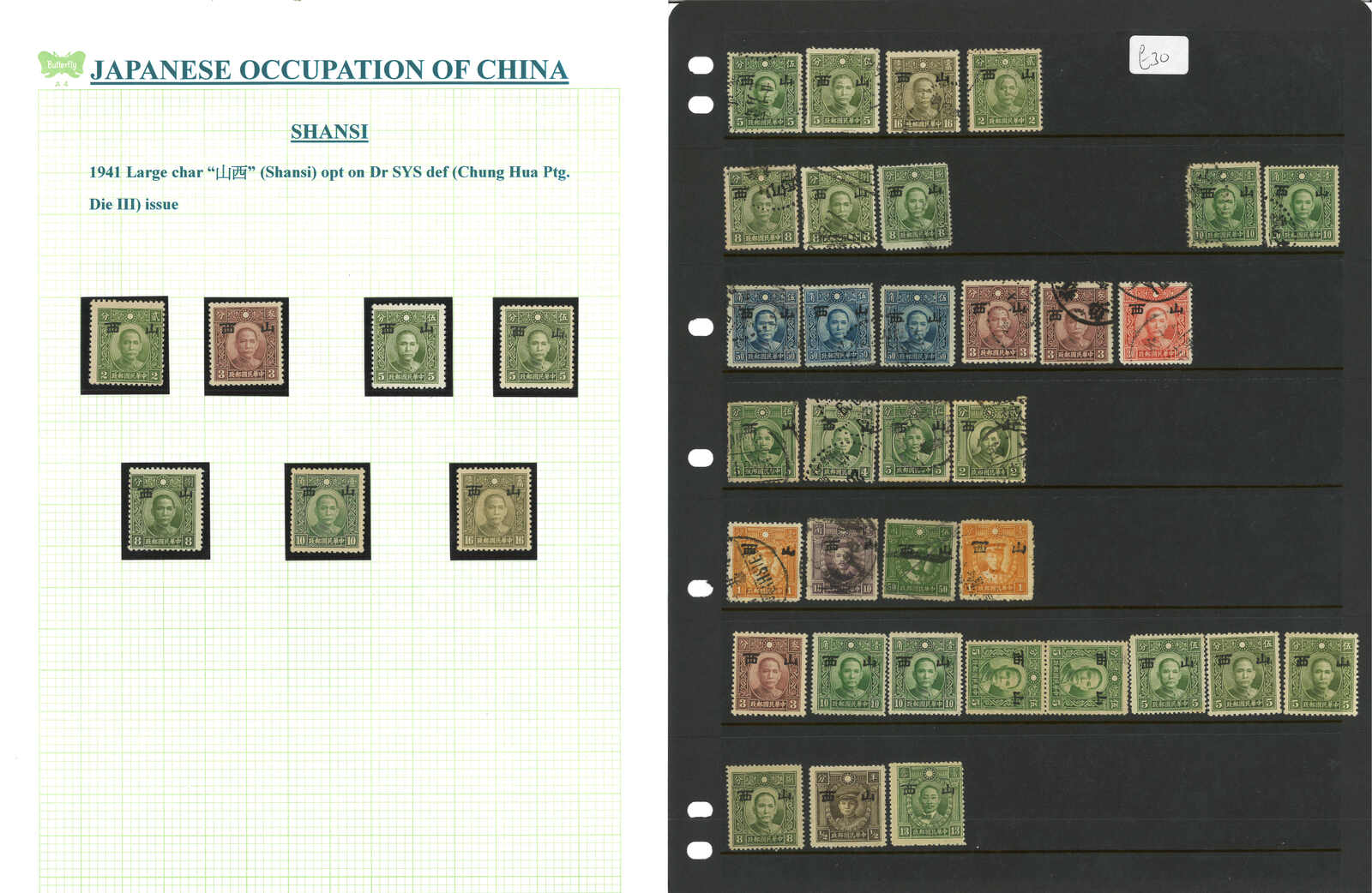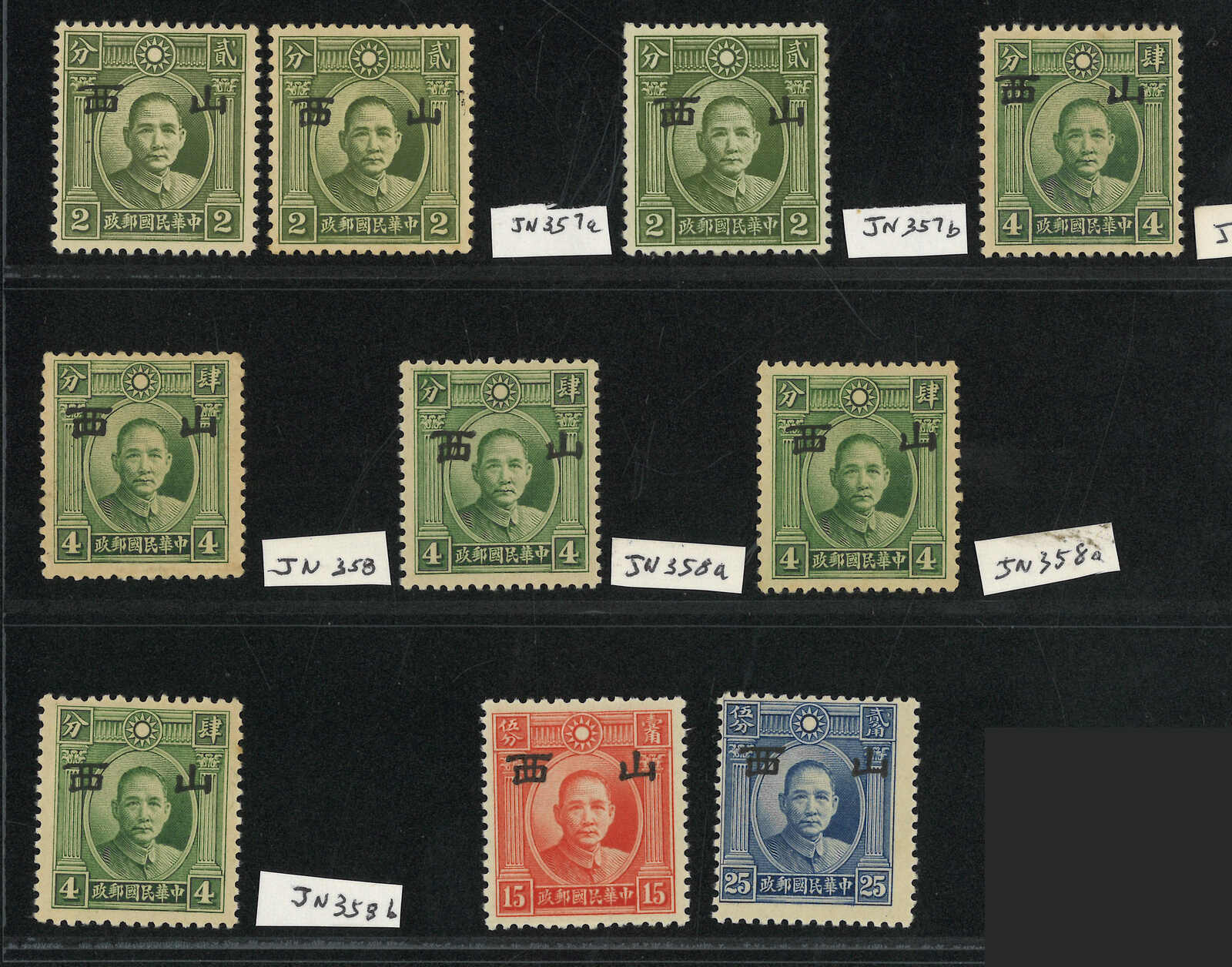 1941 a group of about 92 SYS and Martyrs ovpt. small and large figure "Shansi" issues, including mint and used stamps. Covering various printings of original stamps.