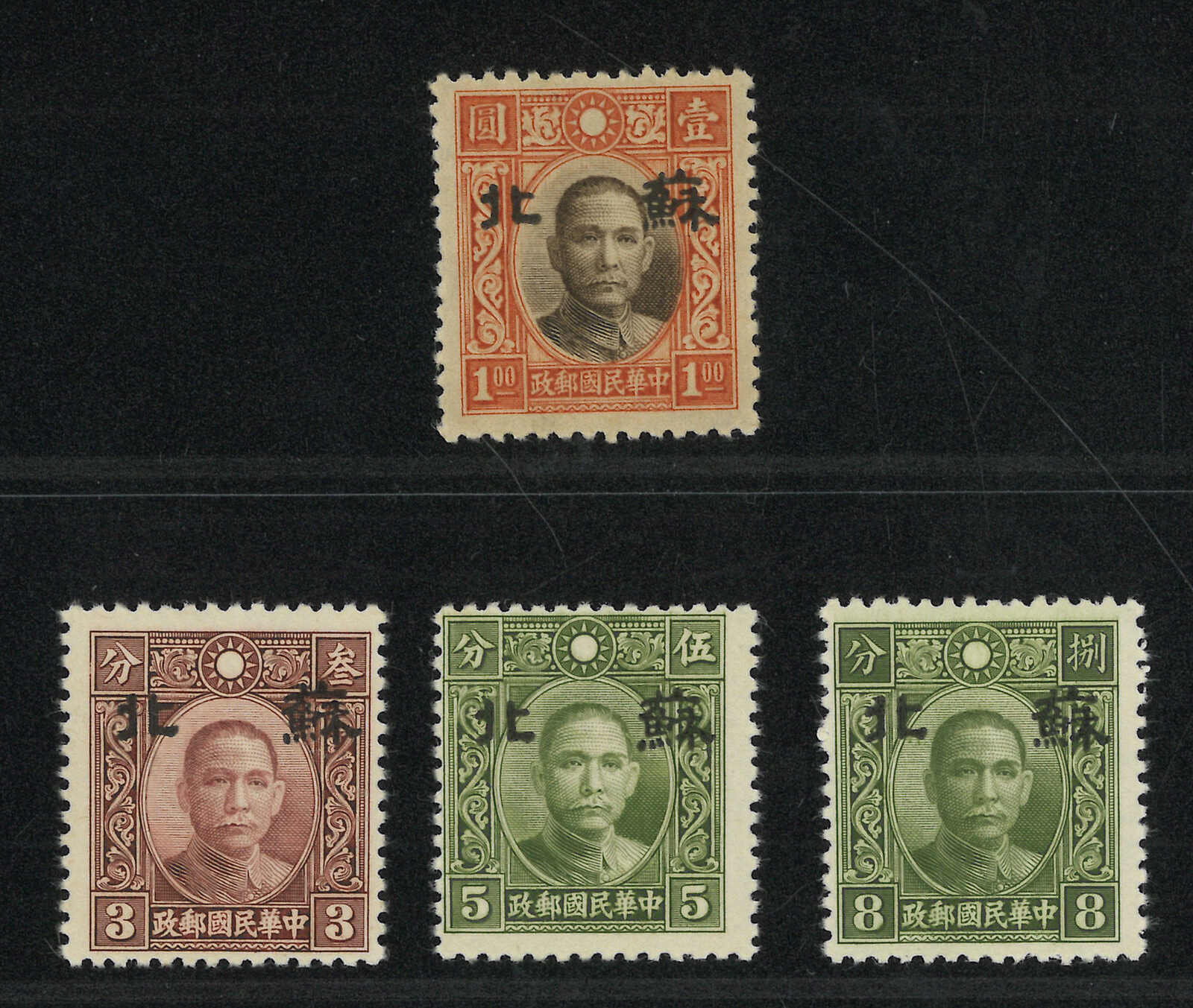 1941年中華版孫像(空心全鈕及實心全鈕)加蓋小字“蘇北”新全(陳目JN151-154),無貼/背貼上品。(Image 1)