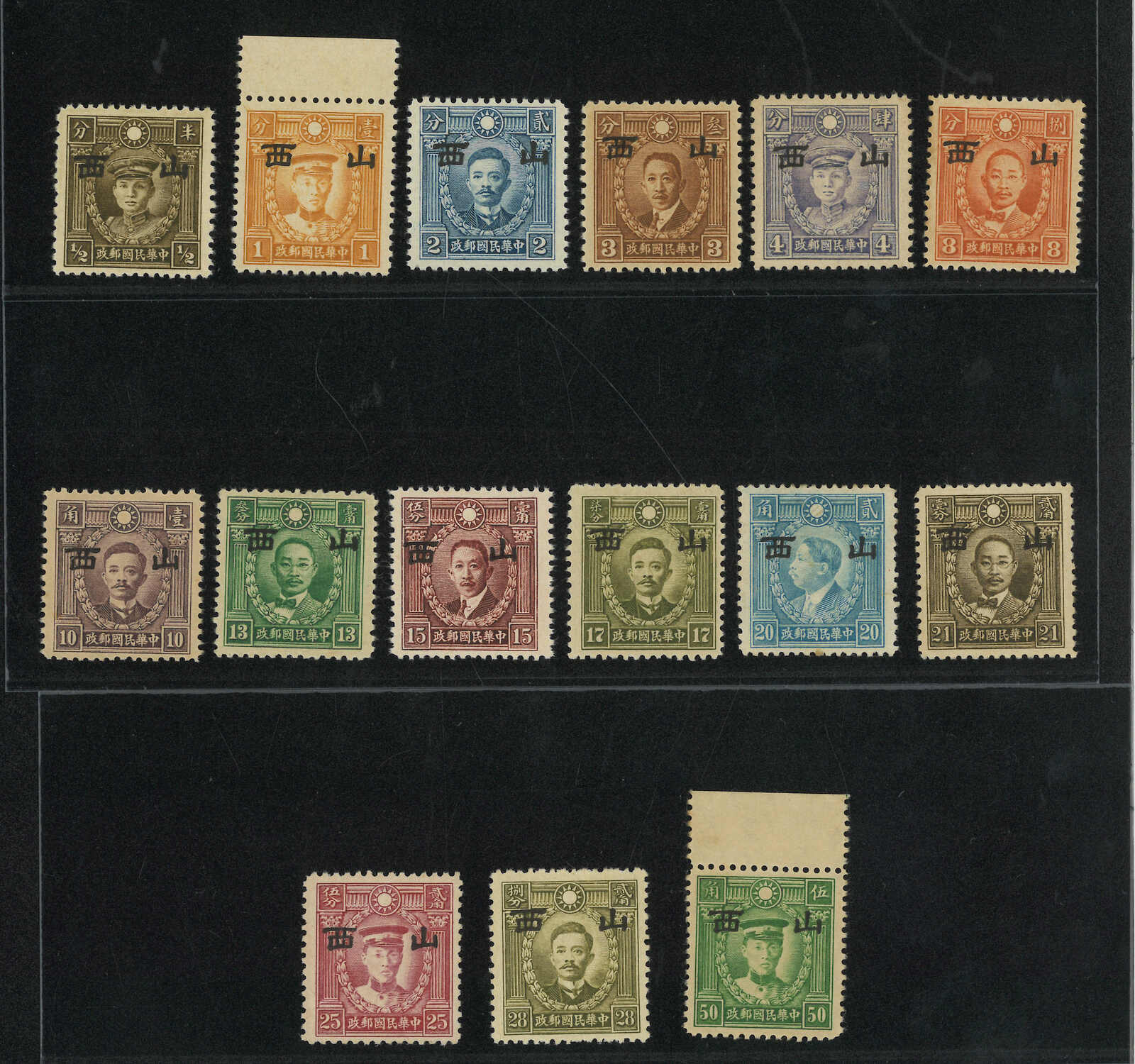 1941年香港版無水印烈士加蓋大字“山西”新全(陳目JN387-401),無貼/背貼上品。(Image 1)