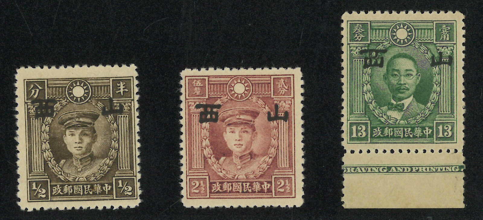 1941 Peking Print Martyrs ovpt. small figure “Shansi” complete set (Chan JN128-130), MH with original gum.