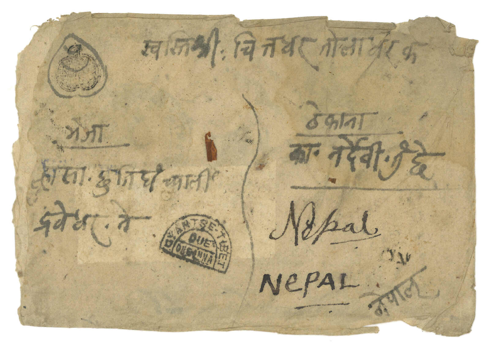 ca 1862 Stampless cover from Tingri to Kathmandu, with small wax seal.