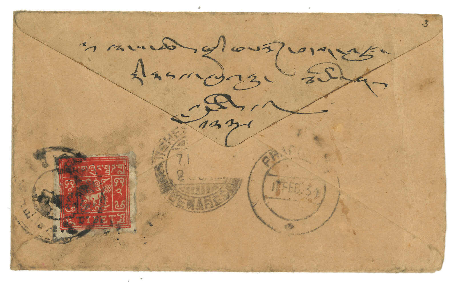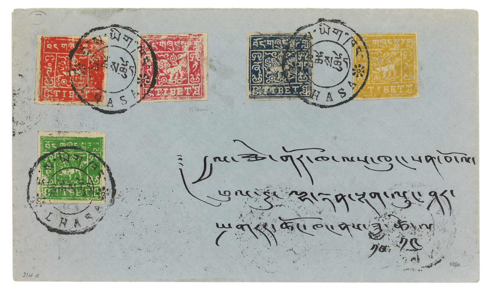 1930年代尼泊爾駐拉薩領事館寄江孜,貼西藏獅圖第三版全,銷拉薩戳記。(Image 1)