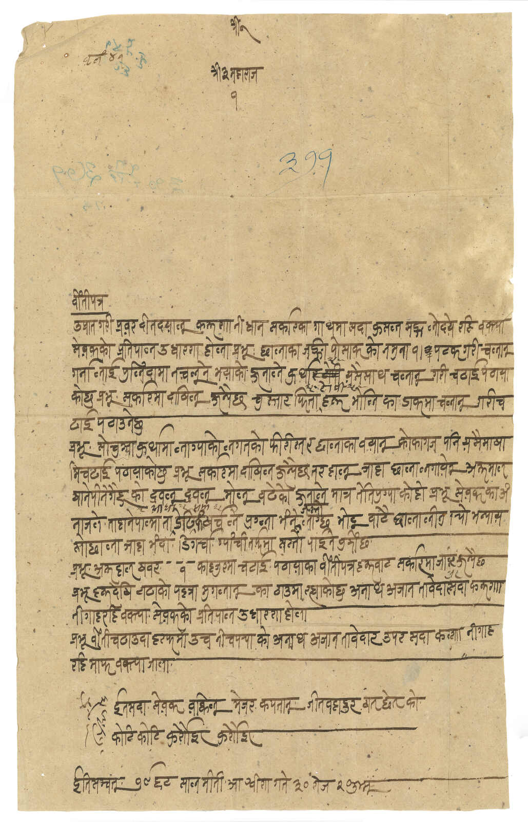 1911 Letter from the Tibetan representative Jit Bahadur, Lhasa to Kathmandu. Dated just before the fall of Qing Dynasty. ‘