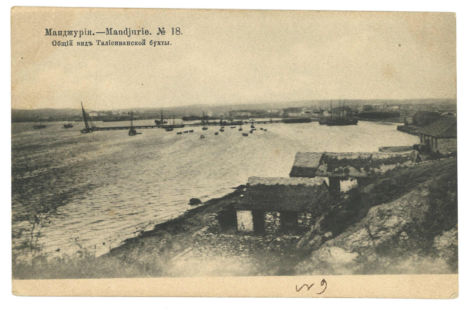 1916 Harbin (20 Feb) to Russia. Dairen view PPC, frankless, applied with Harbin Central Station T&S type 2 oval d.s., alongside with 1st Special Infantry Division circular seal in violet. Arrived Moscow (4 Mar).