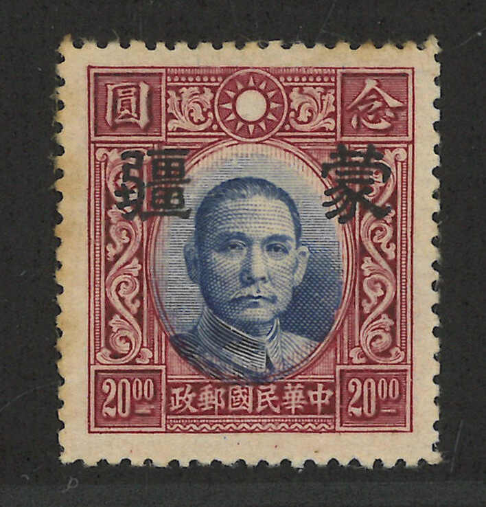 1941年大東版孫像念圓加蓋大字“蒙疆”新,帶破“圓”變異(陳目JM65a),無貼上品。(Image 1)