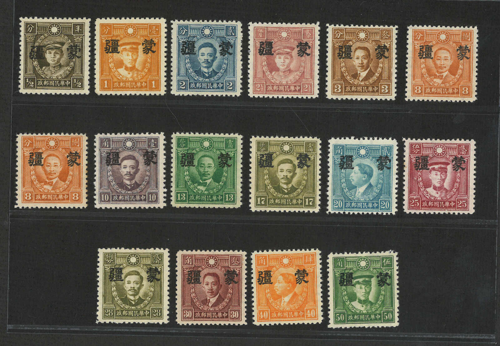 1941年香港版有水印烈士加蓋大字“蒙疆”新全(陳目JM87-101),無貼/輕貼上品。(Image 1)