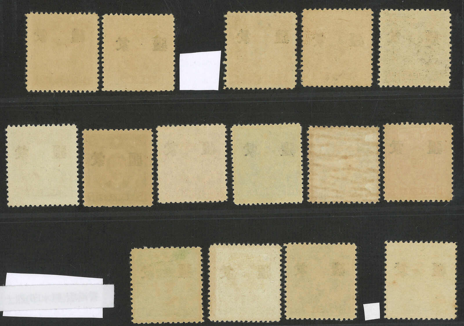 1942年日佔蒙疆加蓋半值於仿版孫像及烈士新全(陳目JM131-143),原膠無貼。(Image 1)