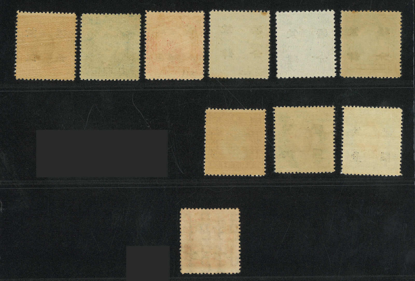 1942年日佔蒙疆加蓋半值於香港版無水印及有水印烈士新全(陳目JM124-130),原膠無貼,上品。(Image 1)