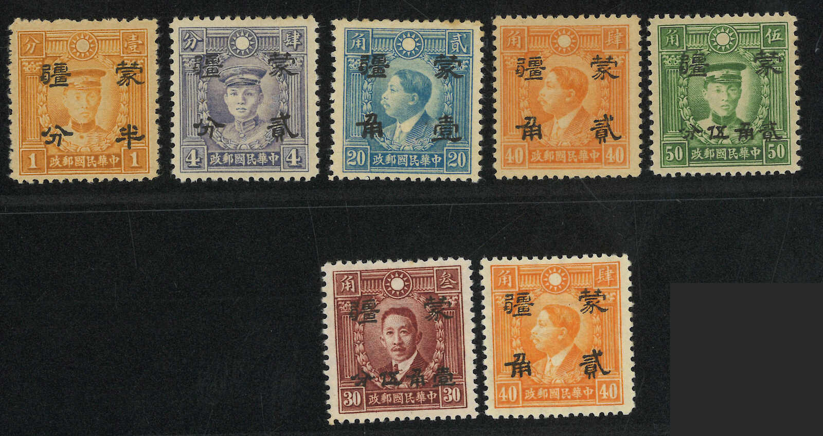 1945年孫像及烈士加蓋大字“蒙疆”再改值票新全(陳目JM190-197),無貼上品。(Image 1)