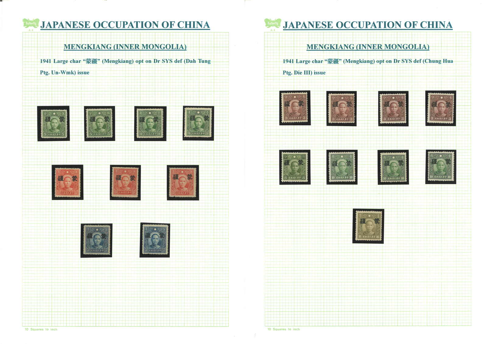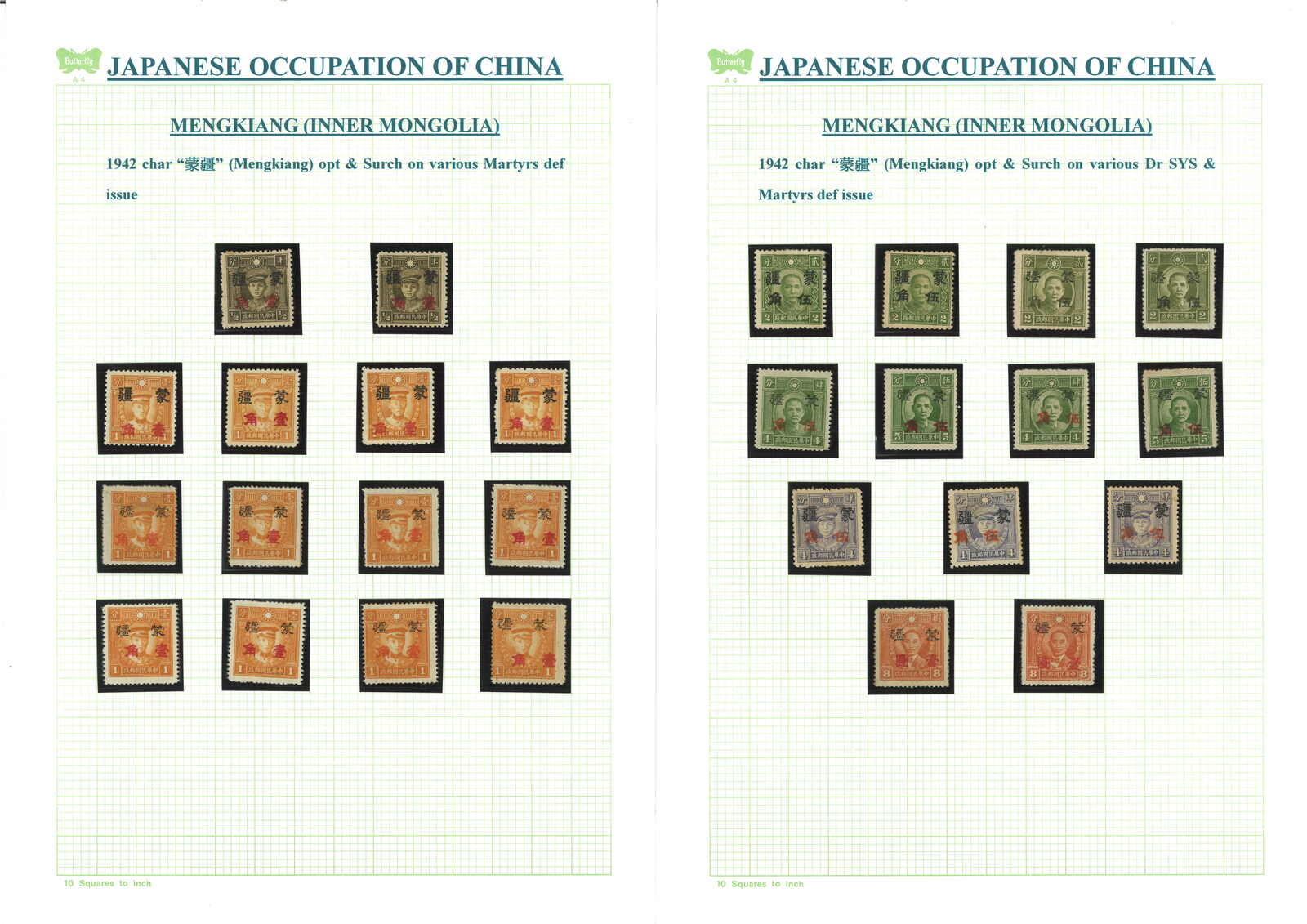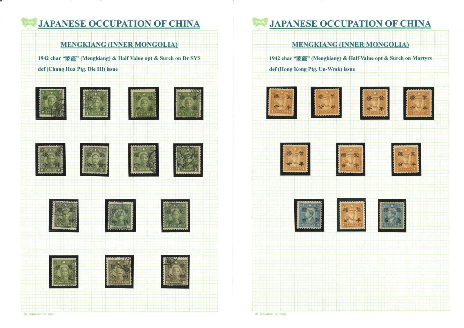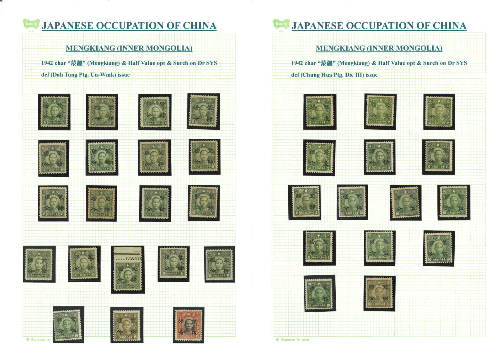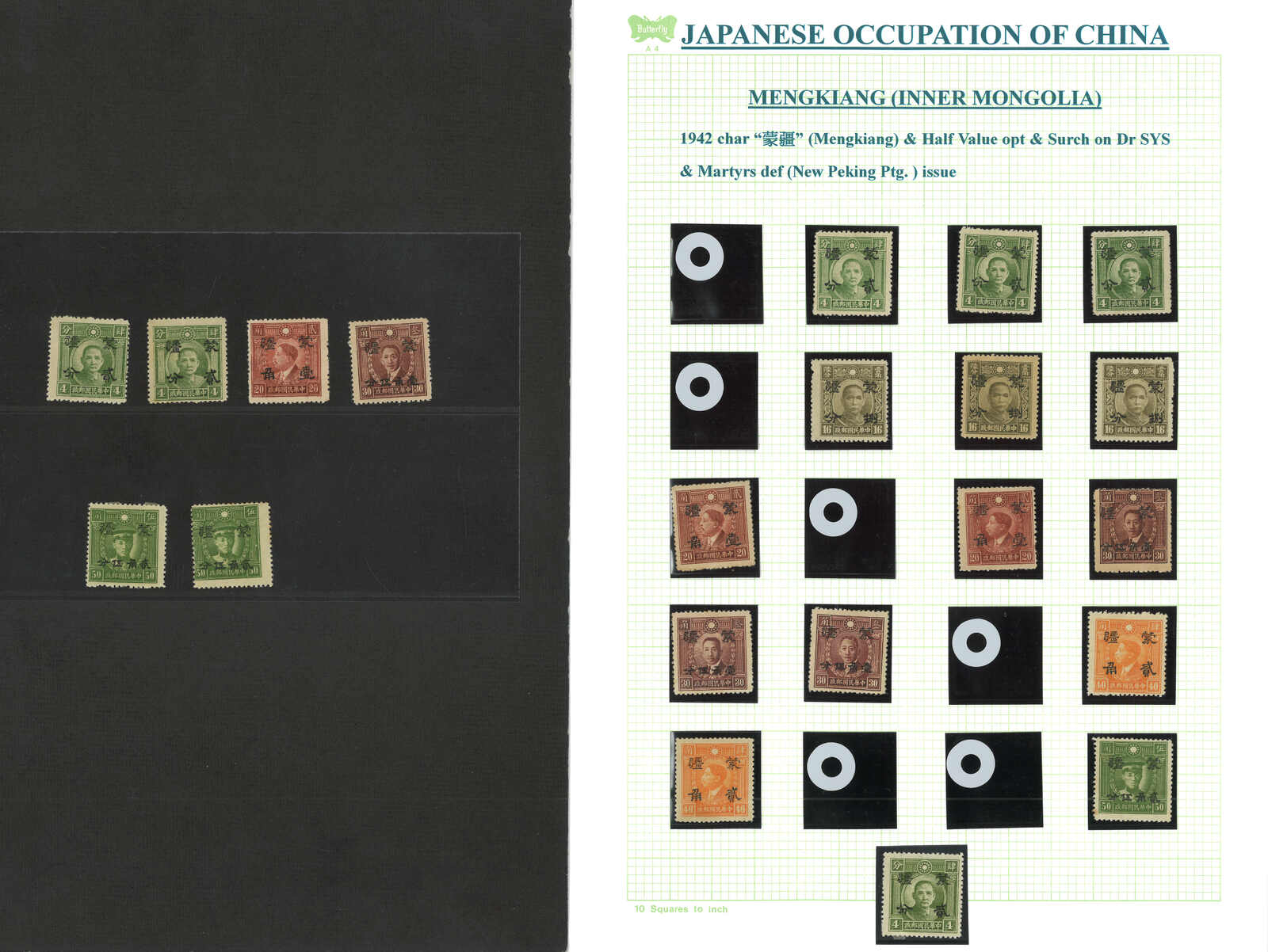 1941 a group of about 659 SYS and Martyrs ovpt. "Mengkiang", surch half value and resurch on ovpt. "Mengkiang" issues, including mint and used stamps as well as dozens of variety stamps. Covering various printings of original
