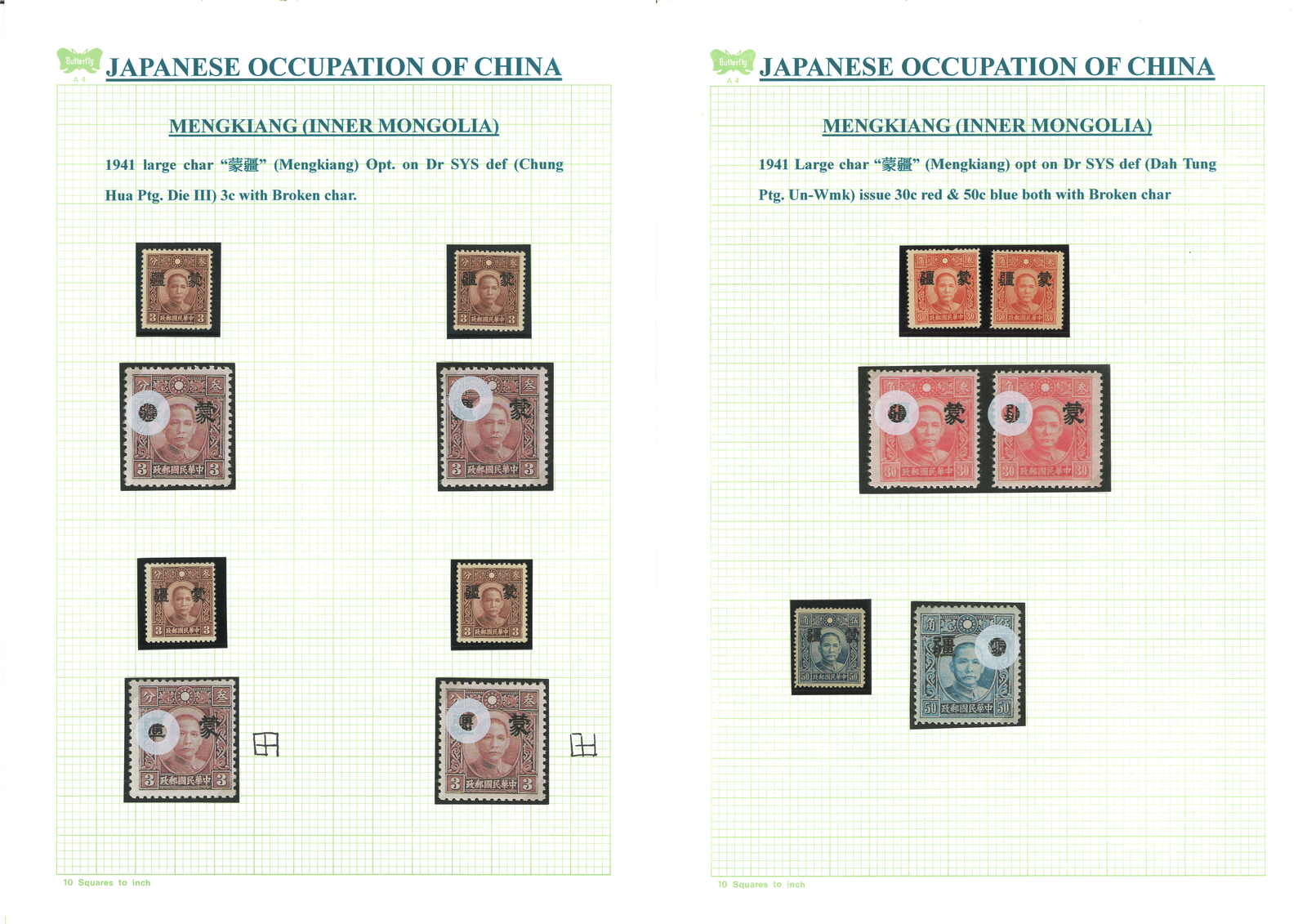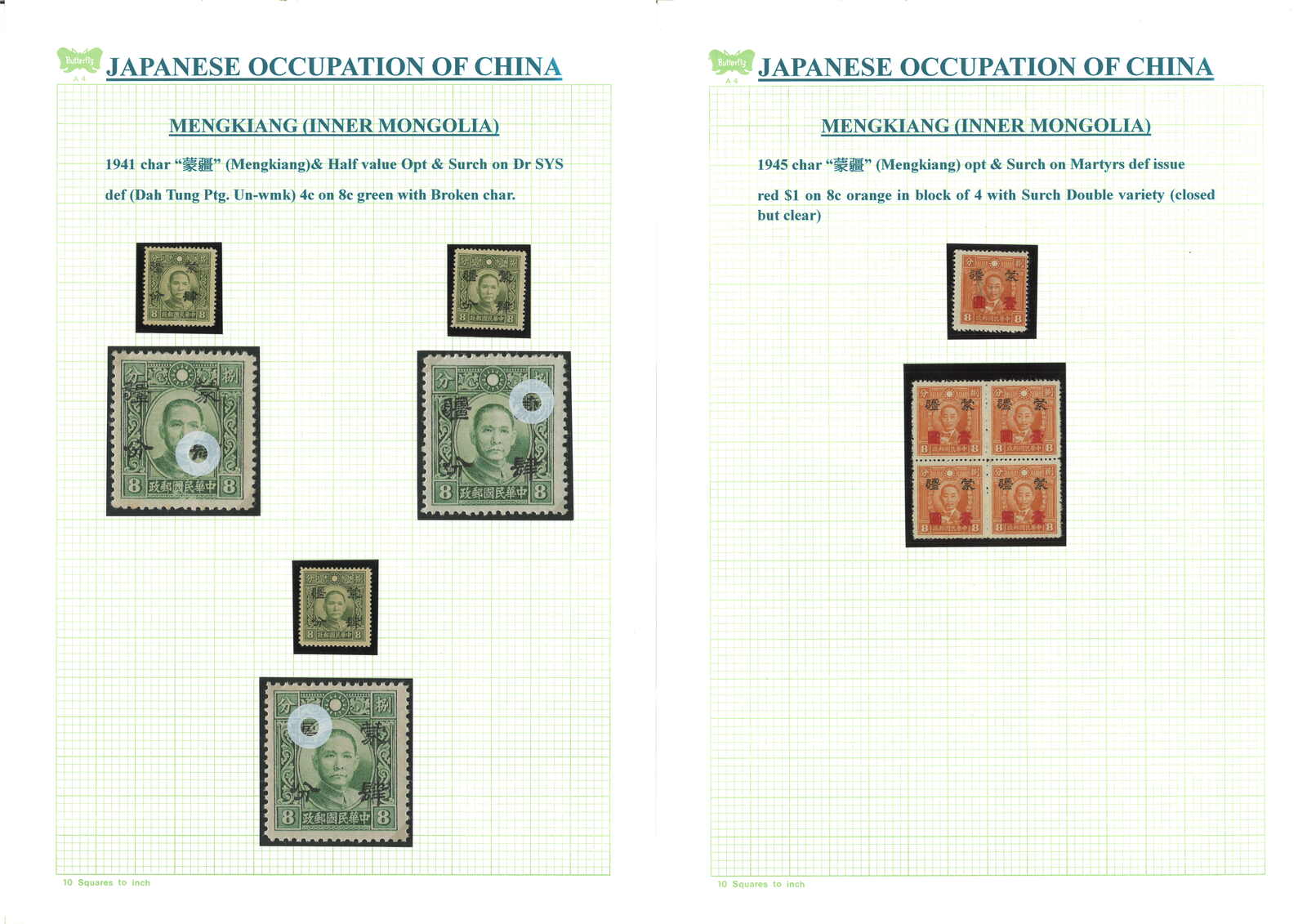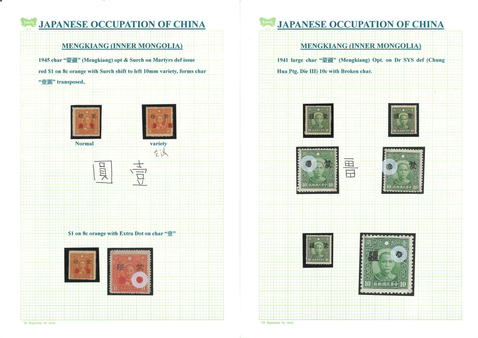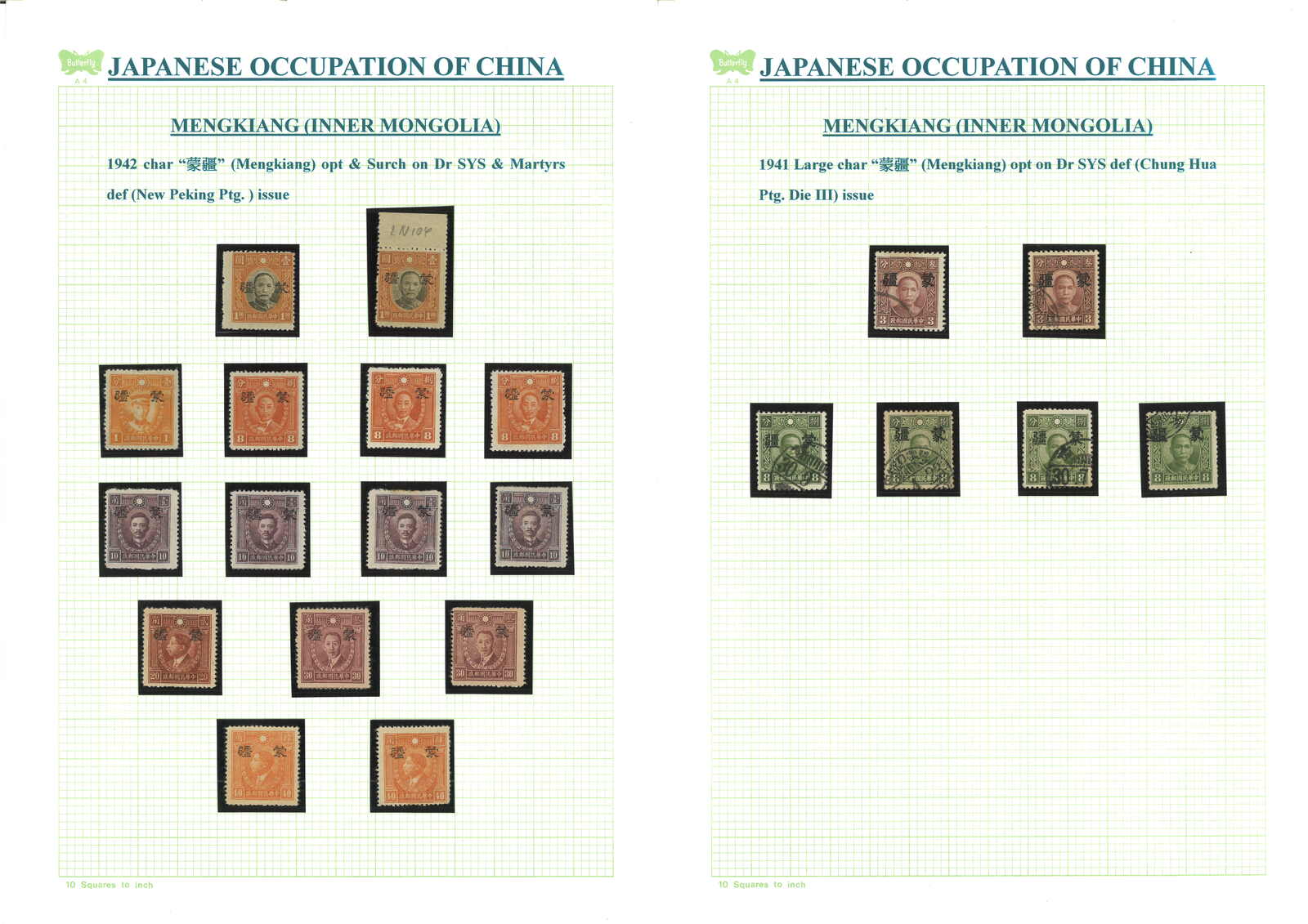 1941 a group of about 659 SYS and Martyrs ovpt. "Mengkiang", surch half value and resurch on ovpt. "Mengkiang" issues, including mint and used stamps as well as dozens of variety stamps. Covering various printings of original