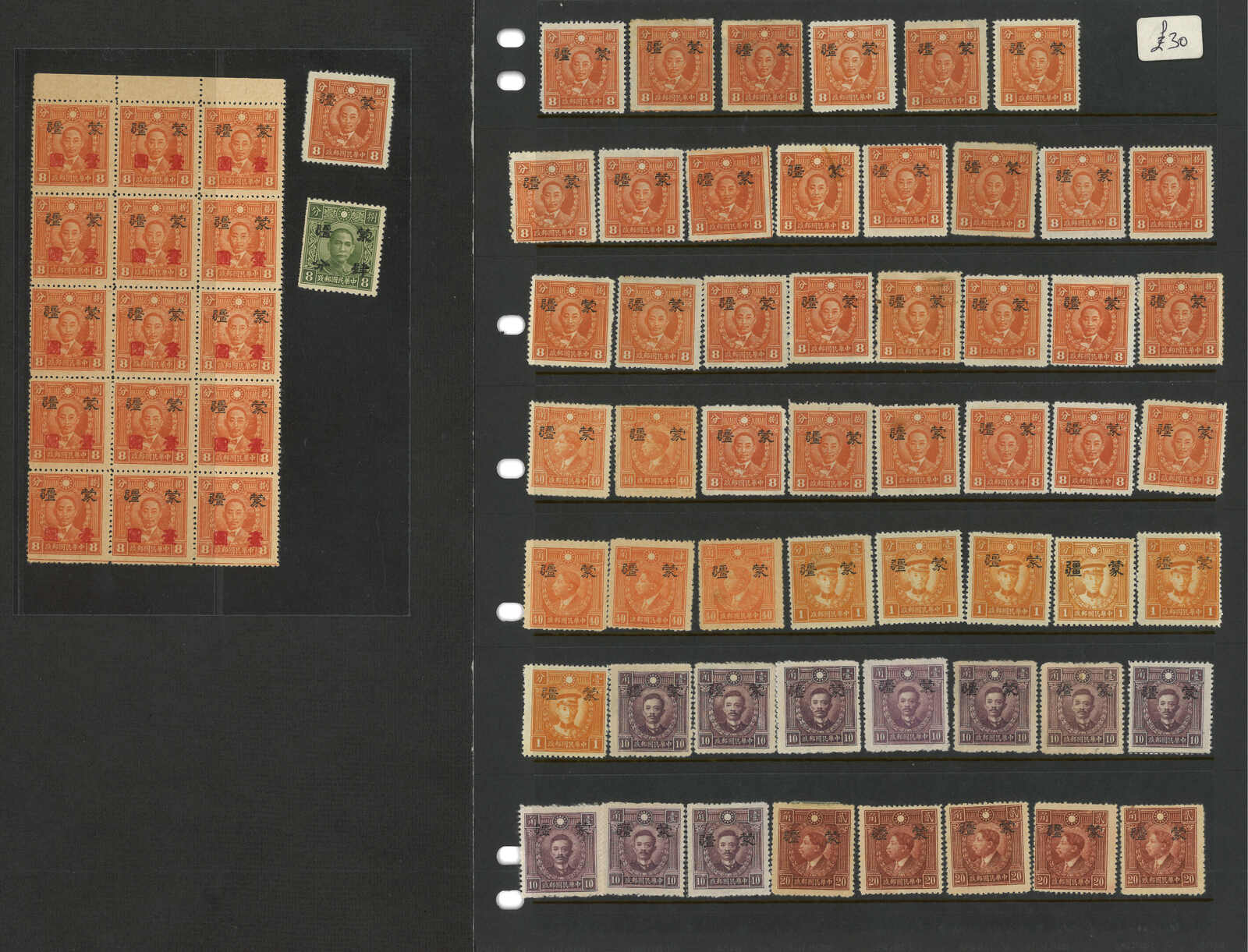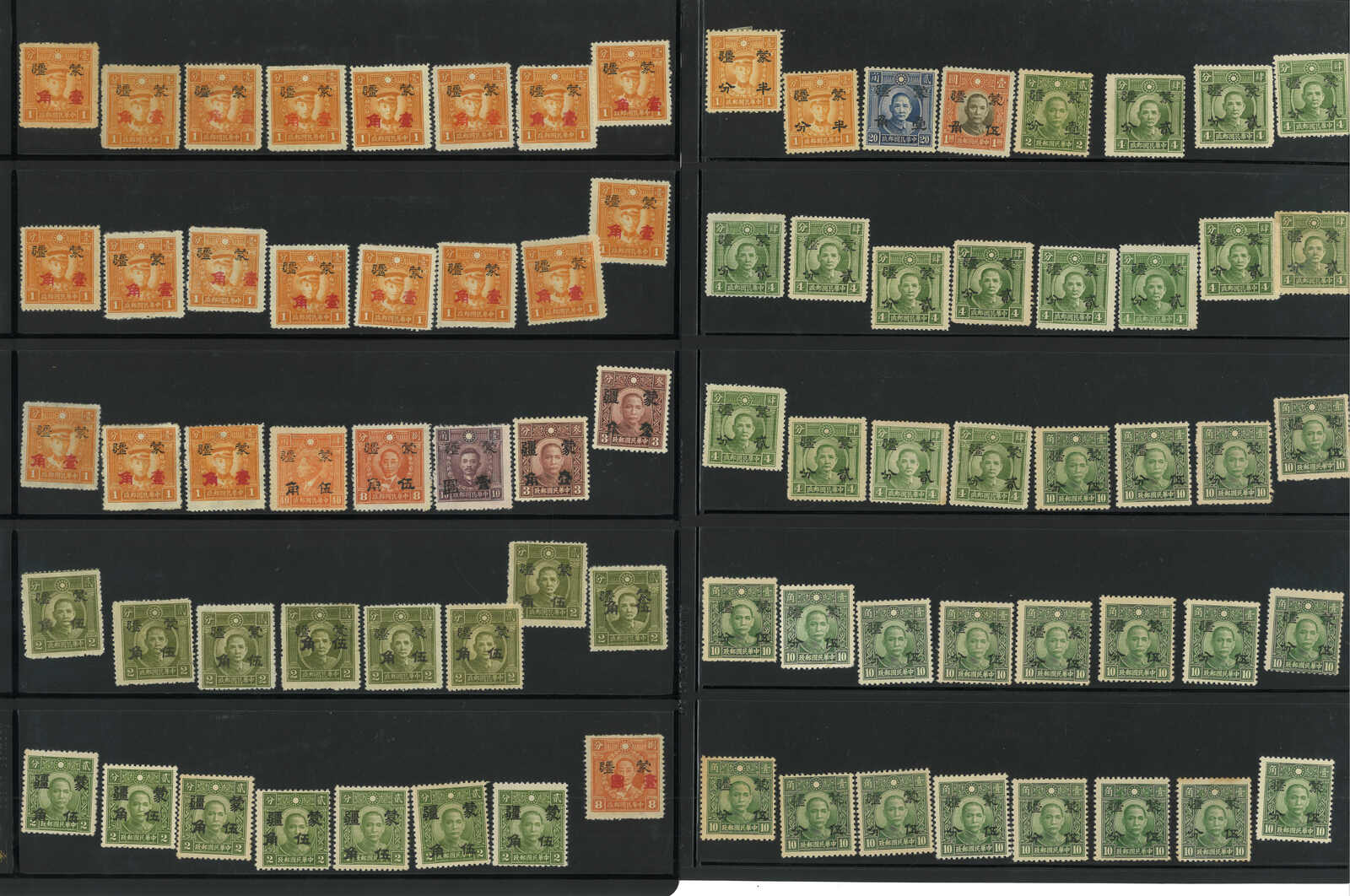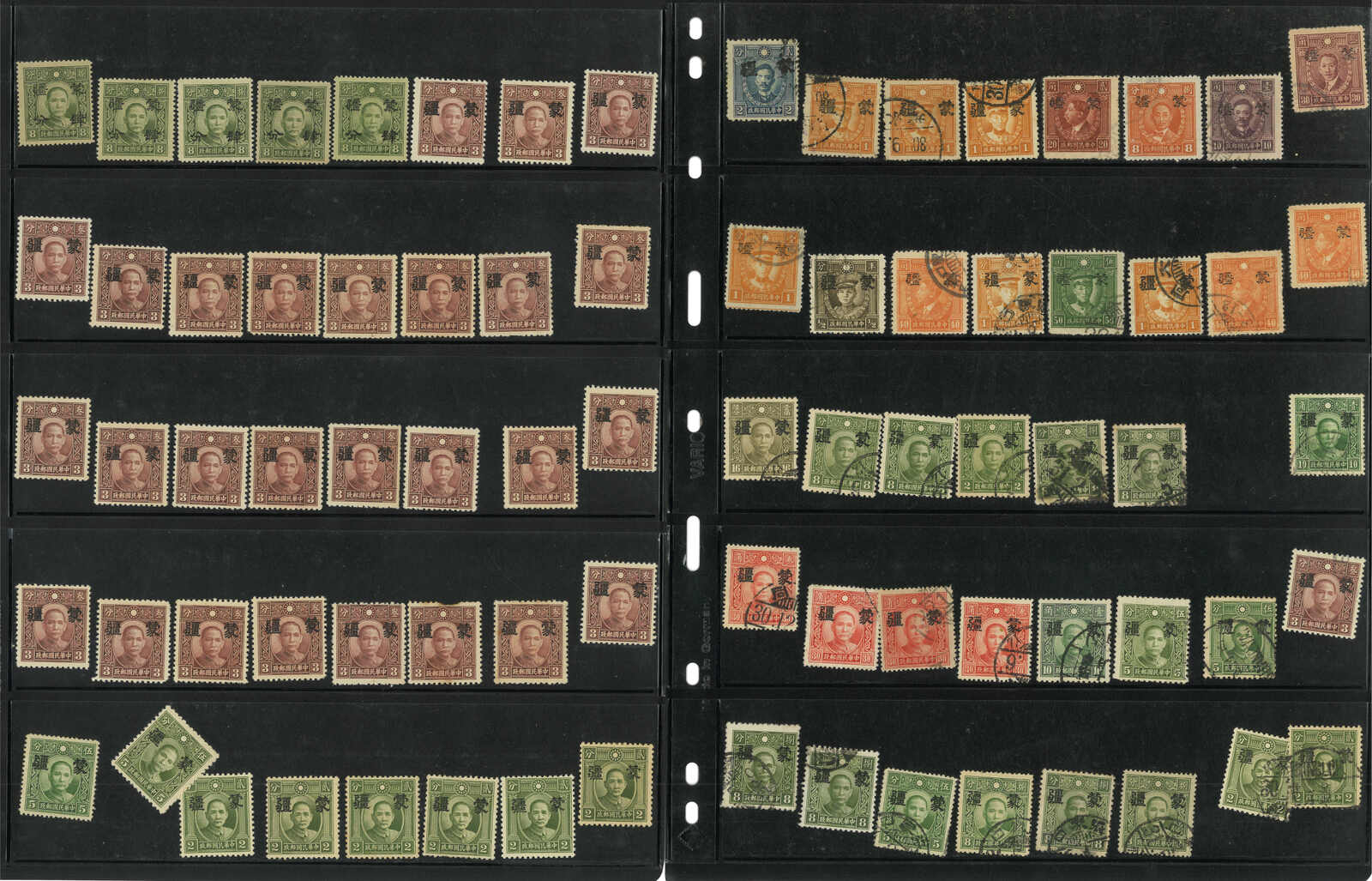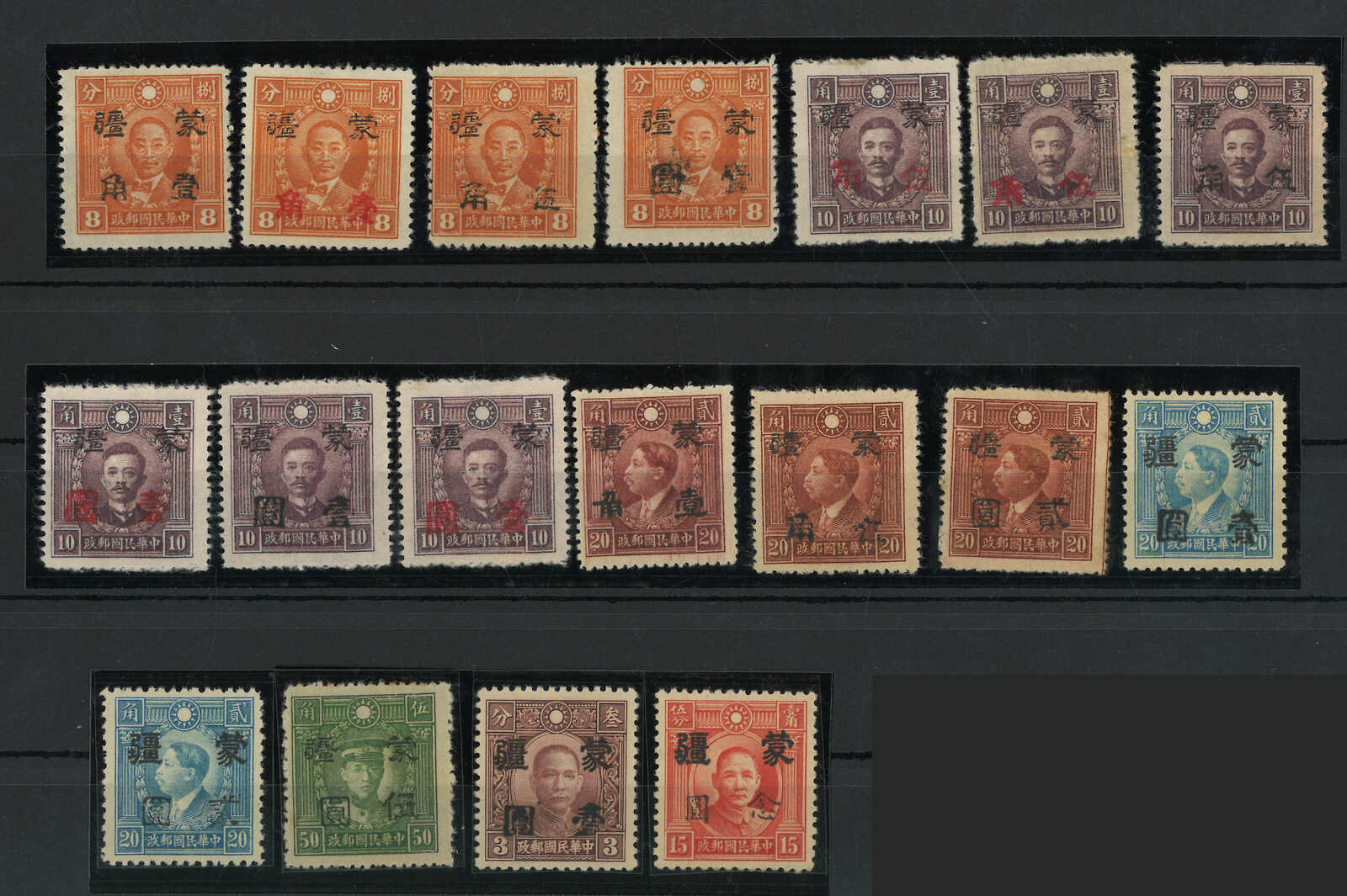 1941年一組約659枚孫像及烈士加蓋“蒙疆”、蒙疆半值及加蓋“蒙疆”再改值票,包含新舊票以及40多枚變異票,原票版別不同。(Image 1)