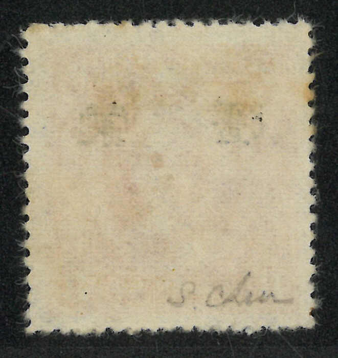1945年仿北京版烈士8分加蓋“蒙疆”再改值1元新,帶改值倒蓋及上移變異(陳目JM204)。無貼上品,背面帶集郵家簽署。(Image 1)
