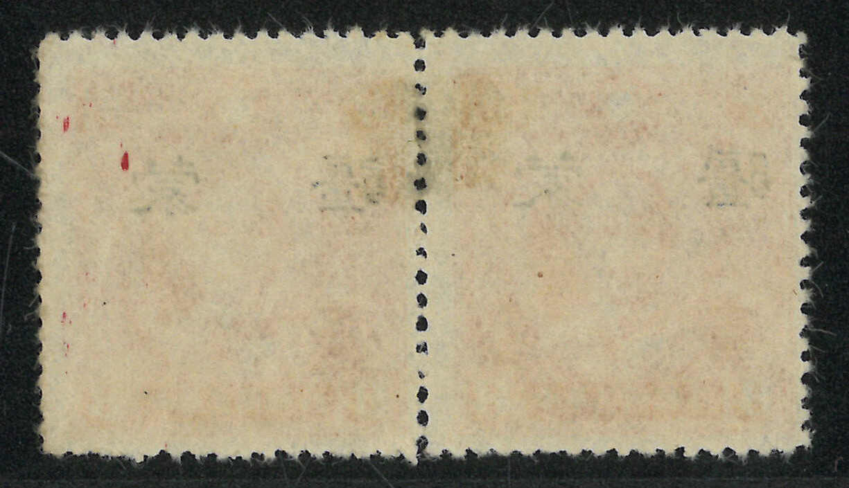 1945 Hong Kong Print unwmk Martyrs 4c ovpt. large figure “Mengkiang” and resurch 50c in horizontal pair, with surch shiftd variety (Chan JM195). MNH. Very Fine.